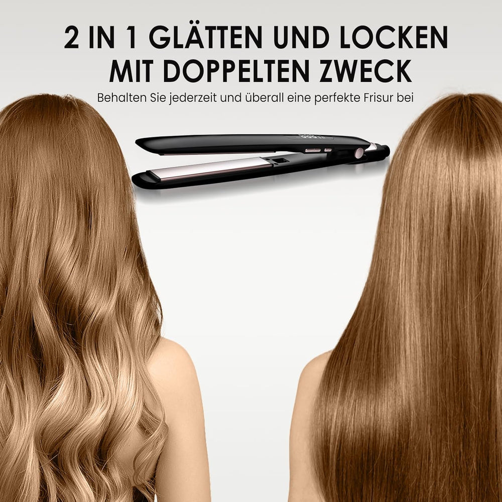 - √【Haarglätter und Lockenstab 2 in 1, perfekt glattes oder lockiges Haar leicht】Mit schwimmendem zylindrischem und rechteckigem Heizplattendesign kann NOVUS Haarglätter leicht Ihre Idee der Umwandlung von Locken in glatte Effekte zu jeder Zeit