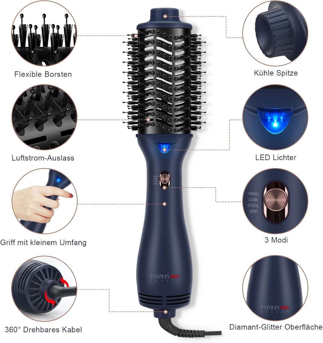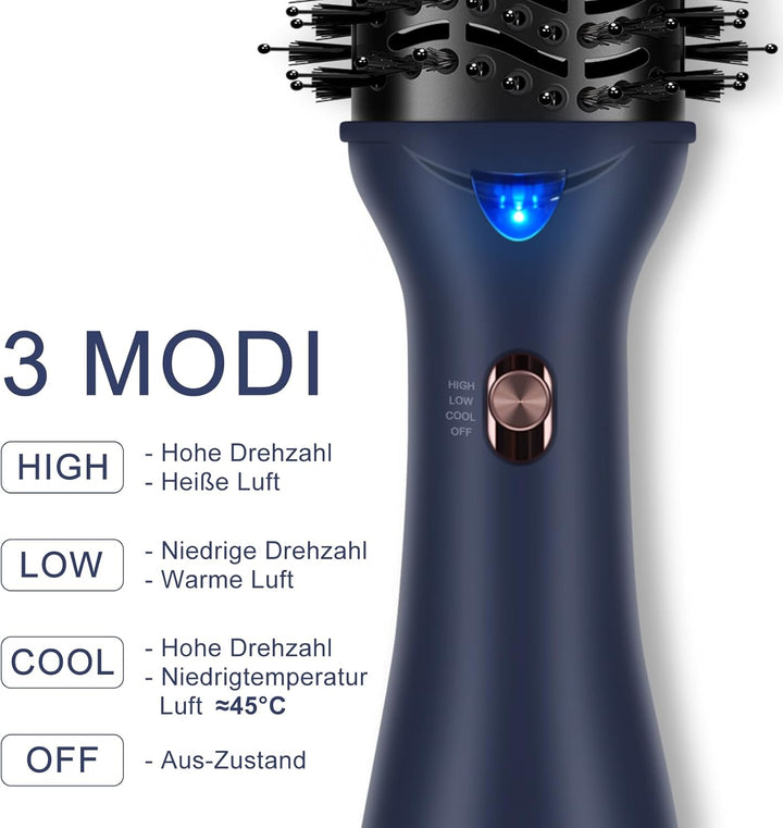 - 3 MODI --- 1000 Watt Föhnbürste, Schnelles Trocknen & Stylen. Wählen Sie aus 3 Heiz- und 2 Gebläsestufen die geeignete Einstellung für Ihren Haartypen. Wählen Sie die Einstellung HIGH für dicke oder widerspenstige Haare und die Einstellung LOW