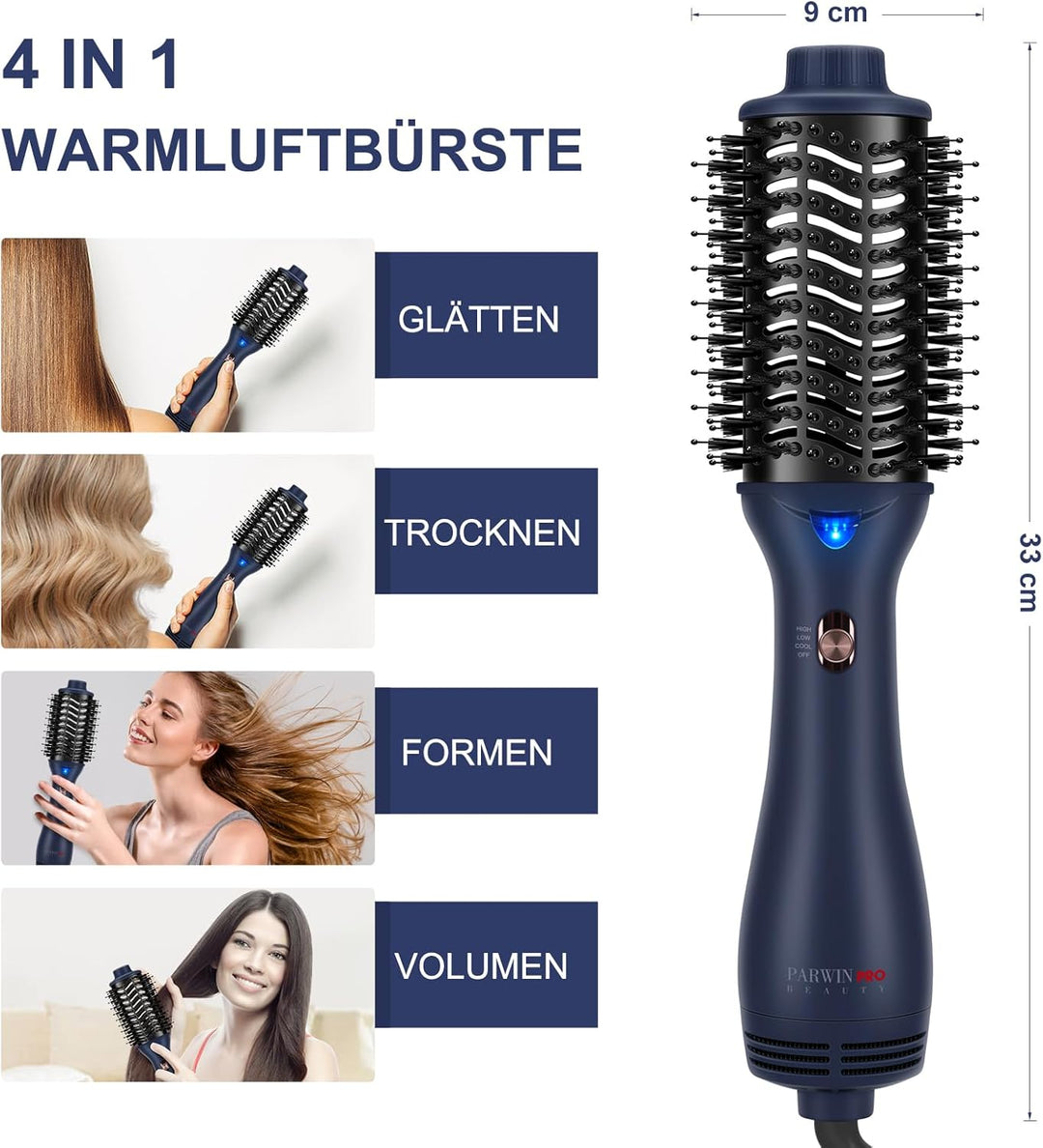 - ONE-STEP WARMLUFTBÜRSTE --- Kombination aus leistungsstarkem Haartrockner und Volumenbürste. 4-in-1 Multifunktions Fönbürste Warmluftbürste, Einfaches und schnelles Trocknen, Volumen geben, Glätten, Stylen mit der Stylingbürste, für ein rundum
