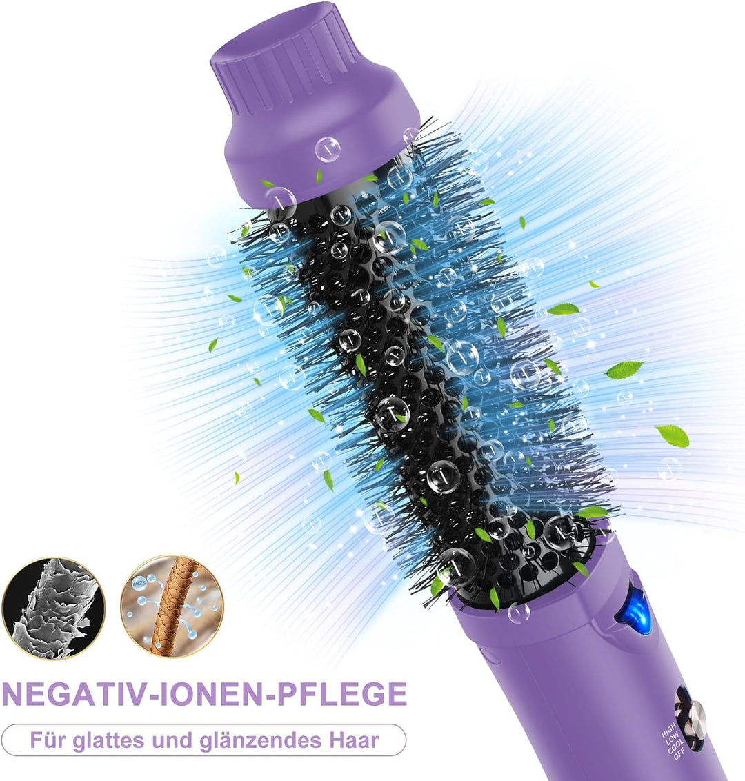 - IONEN PFLEGE --- Warmluftbürste mit Negativ-Ionen-Technologie, Eingebauter Ionengenerator setzt negative Ionen frei, Wirkt aktiv statischer Aufladung entgegen durch Anti-Frizz Effekt und sorgt für extra Glanz. Reduziert die statische Aufladung des