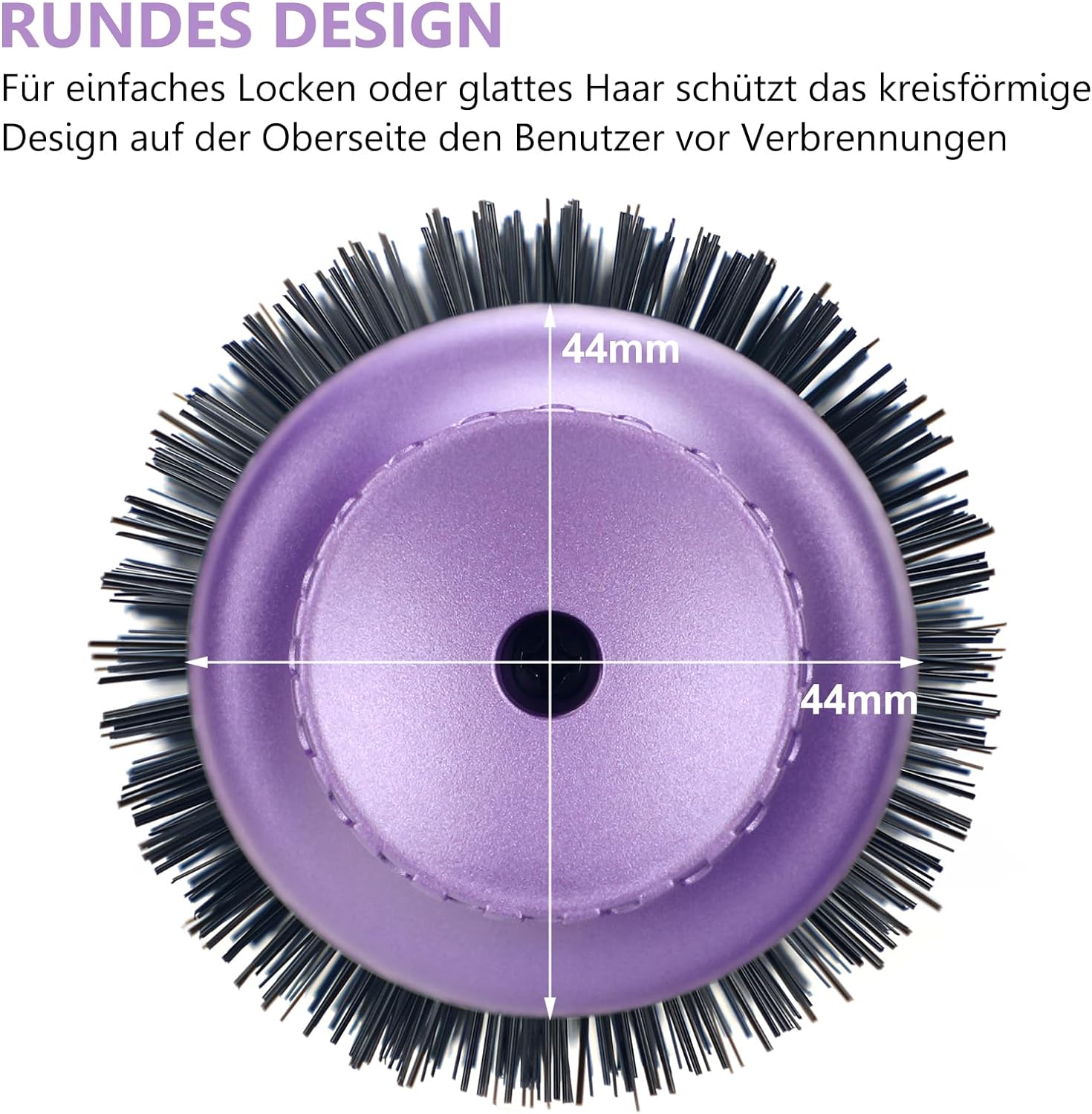 - ERGONOMISCHES DESIGN --- ① Kreisförmiges geformte Bürste, verleiht dem Haaransatz Volumen und sorgt für eine bessere Frisur mit leicht gelockten Haarspitzen. ② kreisförmiges Design, 44*44cm, für alle Haarlängen geeignet. ③ Leichtes Design ④
