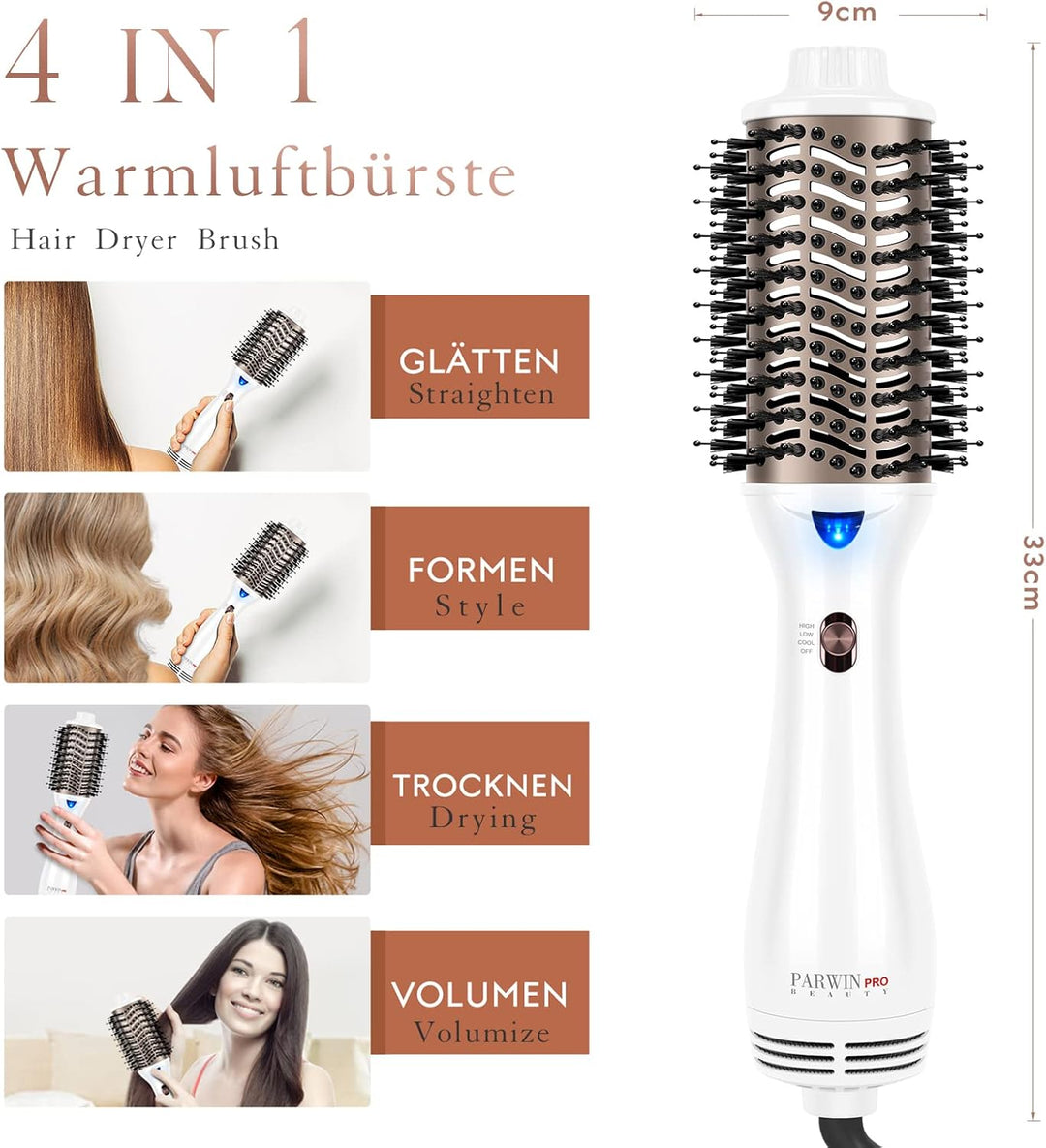 - ONE-STEP WARMLUFTBÜRSTE --- Kombination aus leistungsstarkem Haartrockner und Volumenbürste. 4-in-1 Multifunktions Fönbürste Warmluftbürste, Einfaches und schnelles Trocknen, Volumen geben, Glätten, Stylen mit der Stylingbürste, für ein rundum