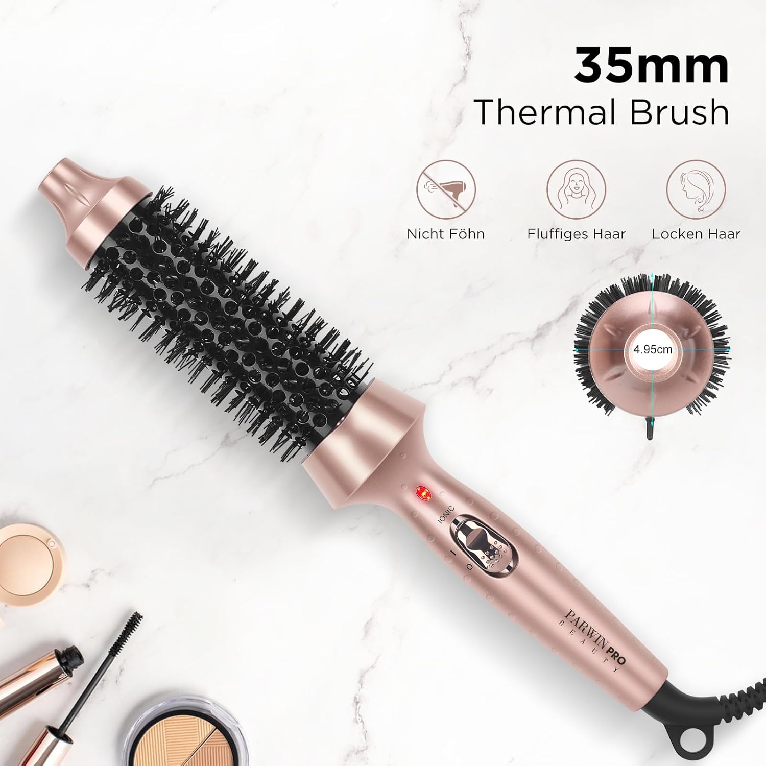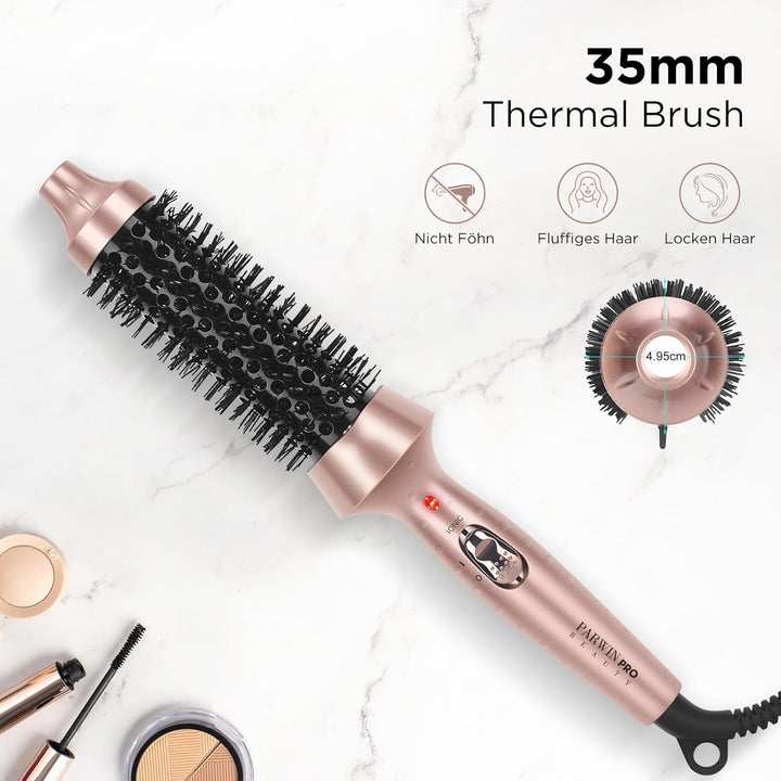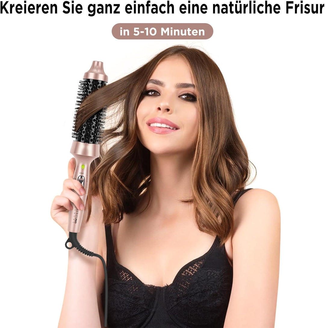 - ❤ Thermal brush für den Look: Die beheizte 35mm wärmebürste ist ein vielseitiges Styling-Werkzeug. Es kann mühelos in wenigen Minuten ein gutes Aussehen erzielt werden. Es wird für mittellanges Haar empfohlen, für sehr kurzes Haar jedoch nicht.