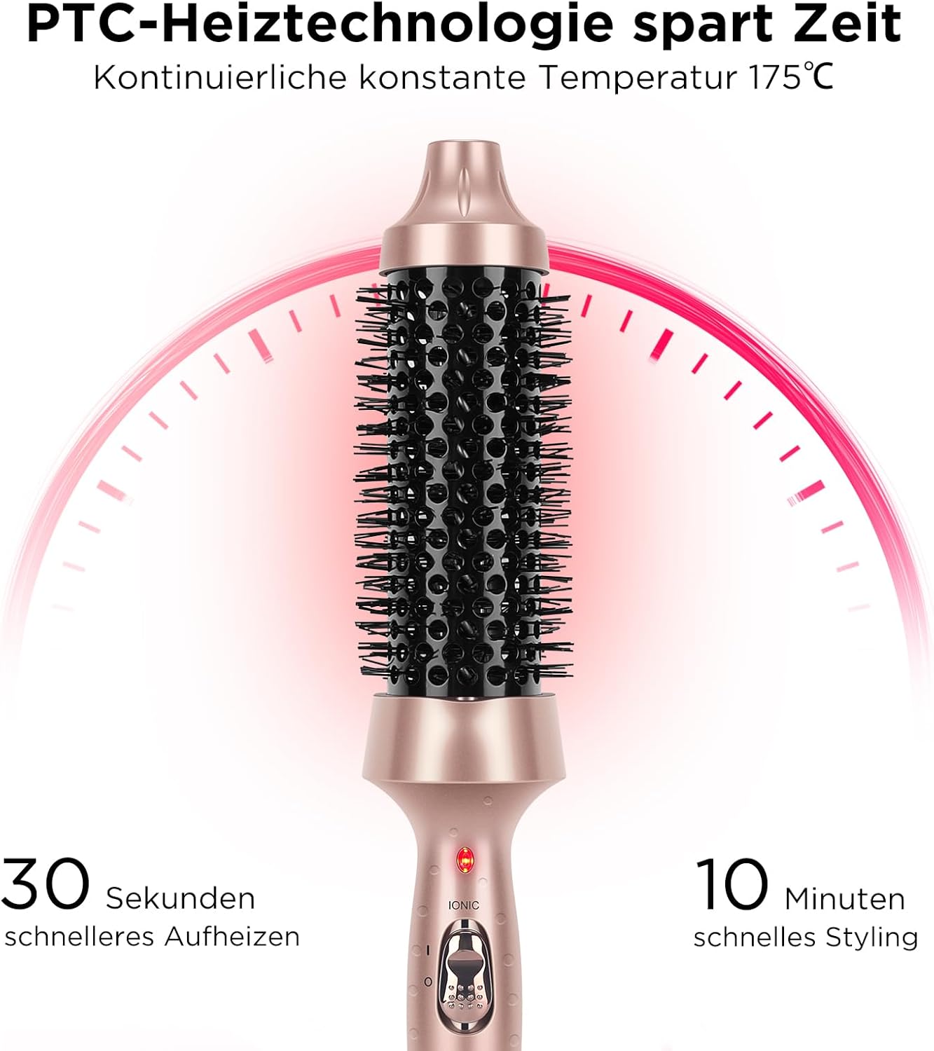 - ❤ 30 Sekunden schnelles Aufheizen und einfach zu bedienen: Die heisse rundbürste nutzt die PTC-Heizmethode mit schneller Aufheizung. Die Standard Temperatur der thermal brush 175 °C± und kann nicht eingestellt werden, aber sie ist einfach zu