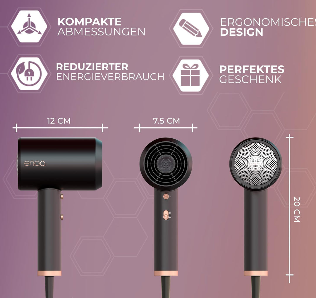 - ✅ SCHNELLES TROCKNEN OHNE BESCHÄDIGUNG DES HAARES. Professioneller Haartrockner mit leistungsstarkem 2000-W-Gleichstrommotor für schnelles und schonendes Trocknen, mit einem salonfähigen Ergebnis im Handumdrehen. Seine Technologie garantiert eine