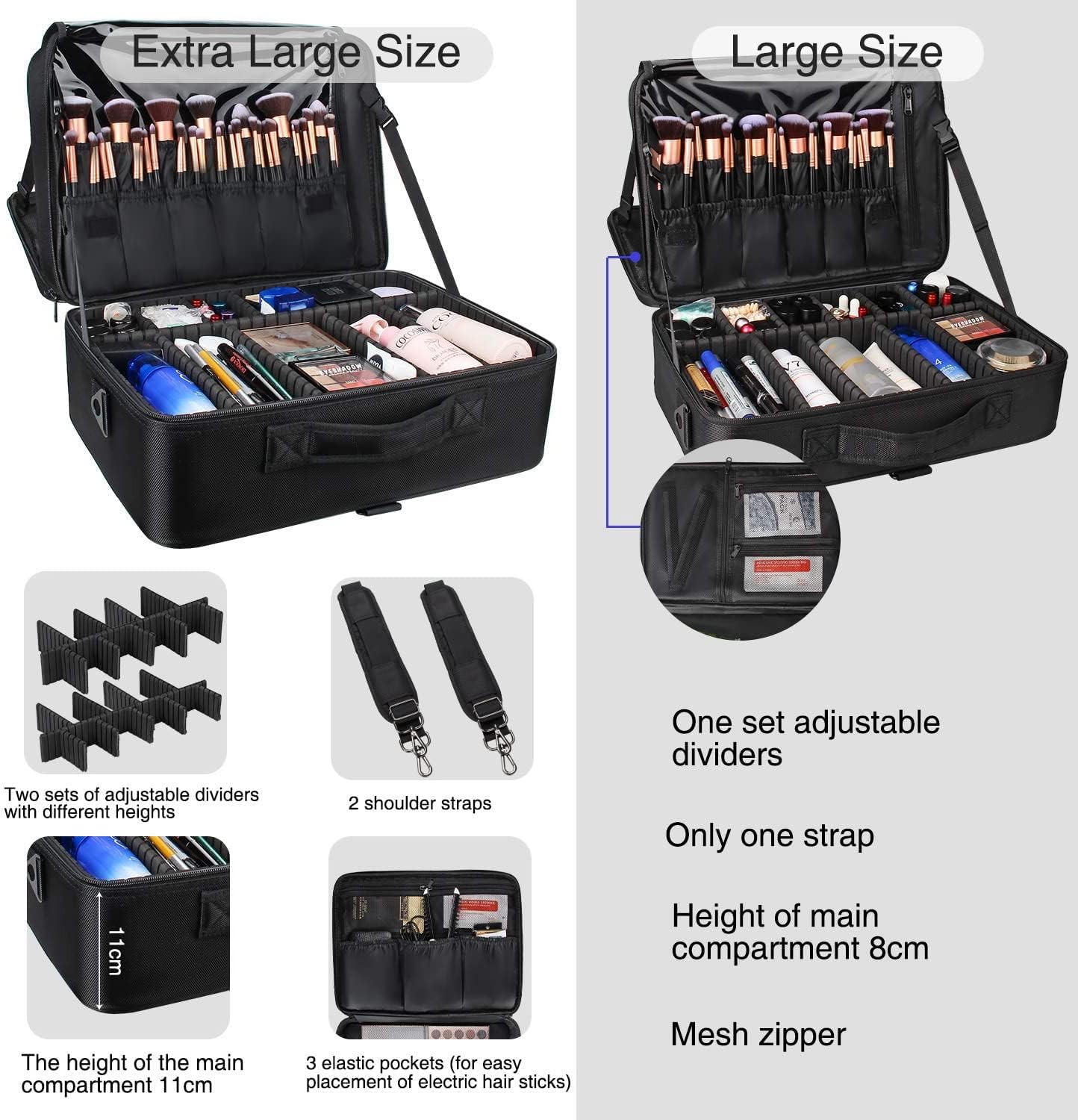 - Geräumig und Multi-Fächer --- Die extra grosse kosmetiktasche hat zwei spezifische Schichten. Erste Schicht: 3 elastische Taschen und 2 Reissverschluss Netztaschen für Haarcurler Haarglätter, Make-up Pinsel, Make-up Werkzeuge, etc. Eine grosse