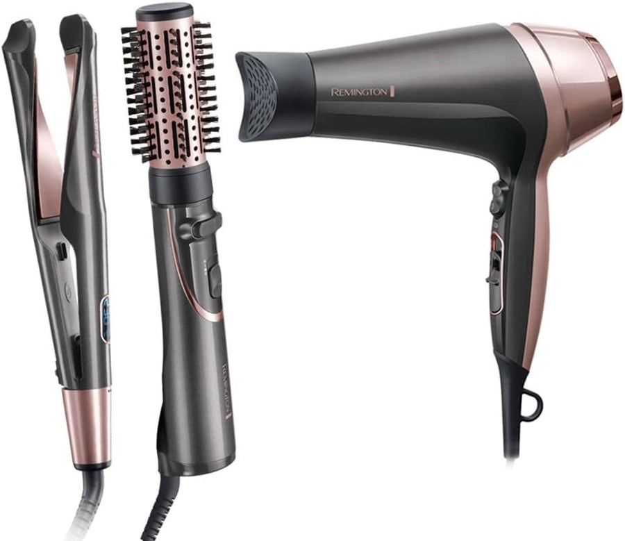 Remington Haarstyling Set Curl & Straight : Haartrockner + Glätteisen + Warmluftbürste Warmluftbürst