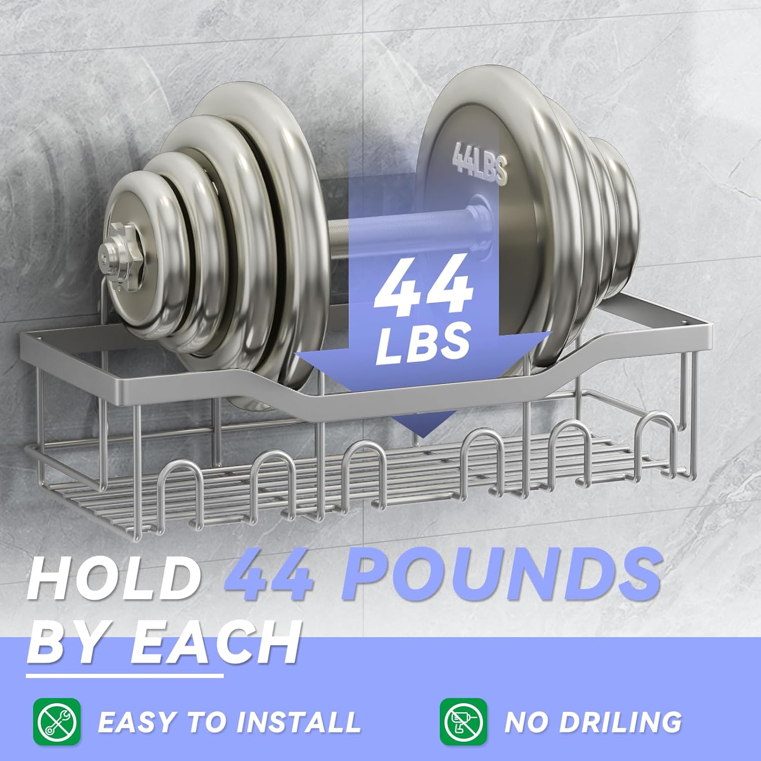 - Edelstahl und Ablaufloch-Design: Duschkorb bestehen aus SUS304-Edelstahl, kein Rost, kein Ausbleichen, kratzfest und langlebig. Ausserdem hat der Badezimmer Regal ein offenes Gitterdesign für maximale Luftzirkulation und abtropfendes Wasser, verursacht
