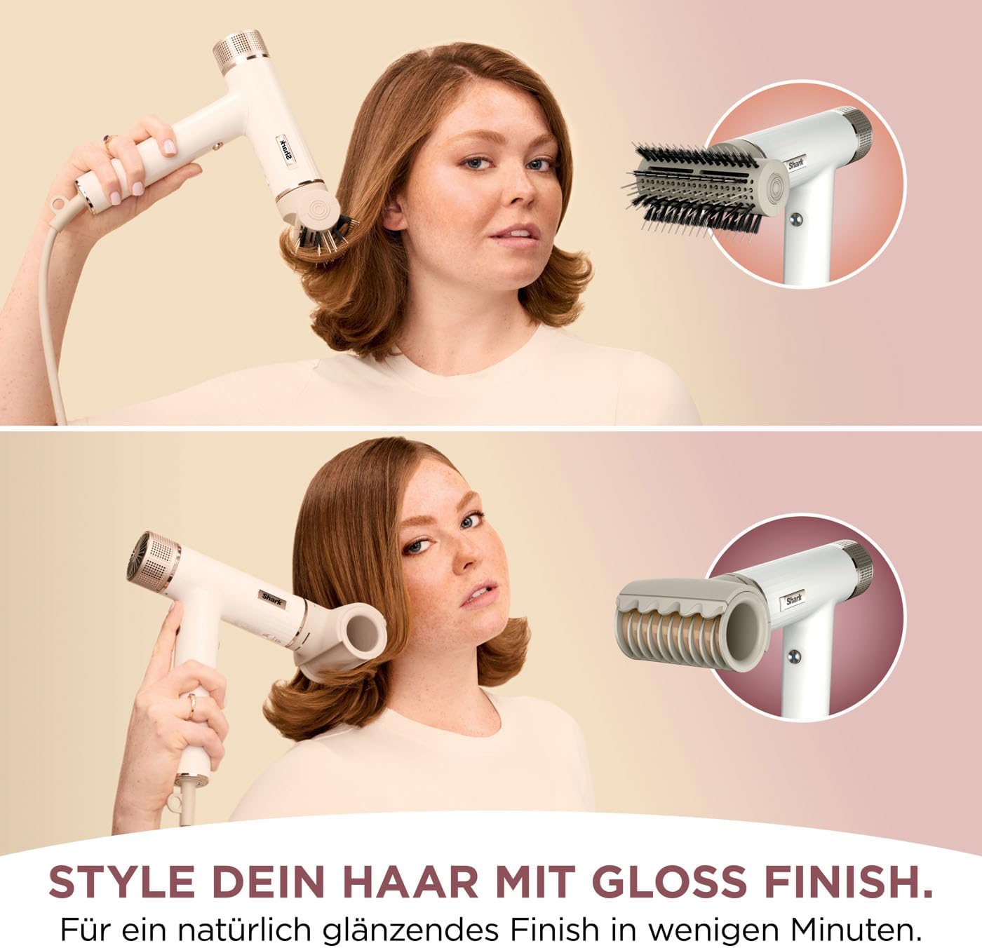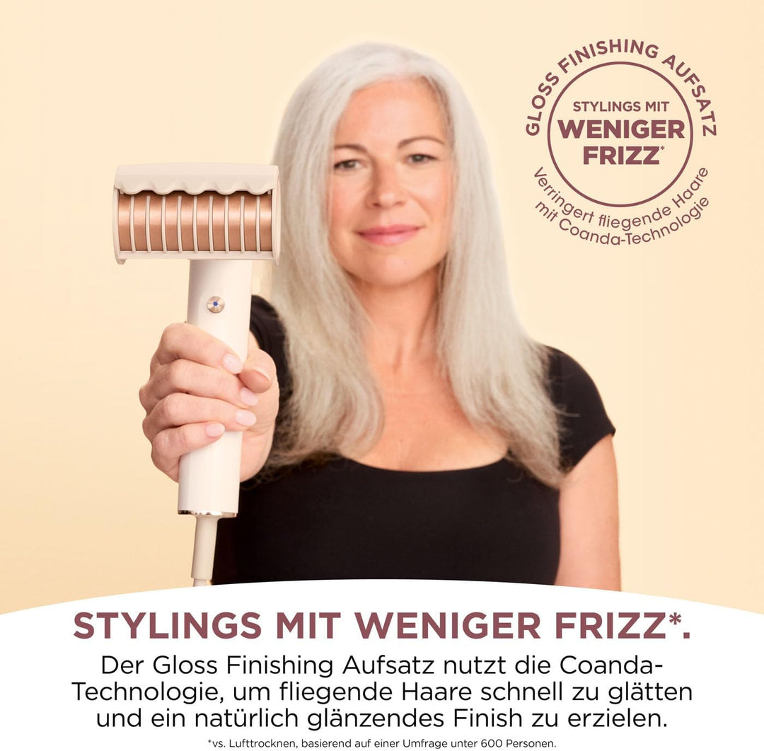 - GLOSS FINISHING-AUFSATZ: Er nutzt Coanda-technologie, um das Haar anzuziehen und fliegende Haare zu glätten - für hochglänzende Styles, mit weniger Frizz*. *vs. zum Lufttrocknen, basierend auf einer Umfrage unter 600 Personen.