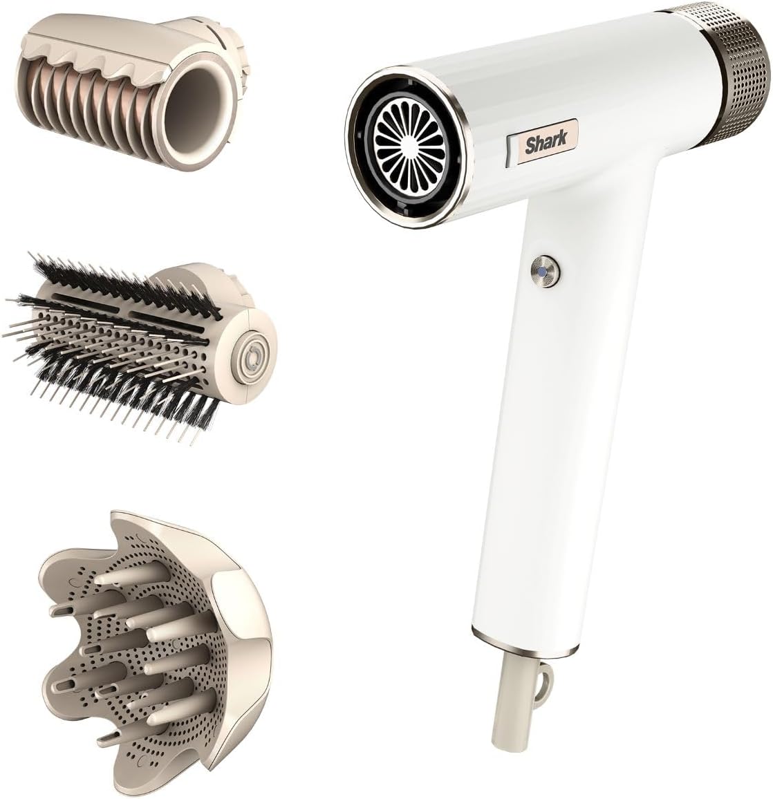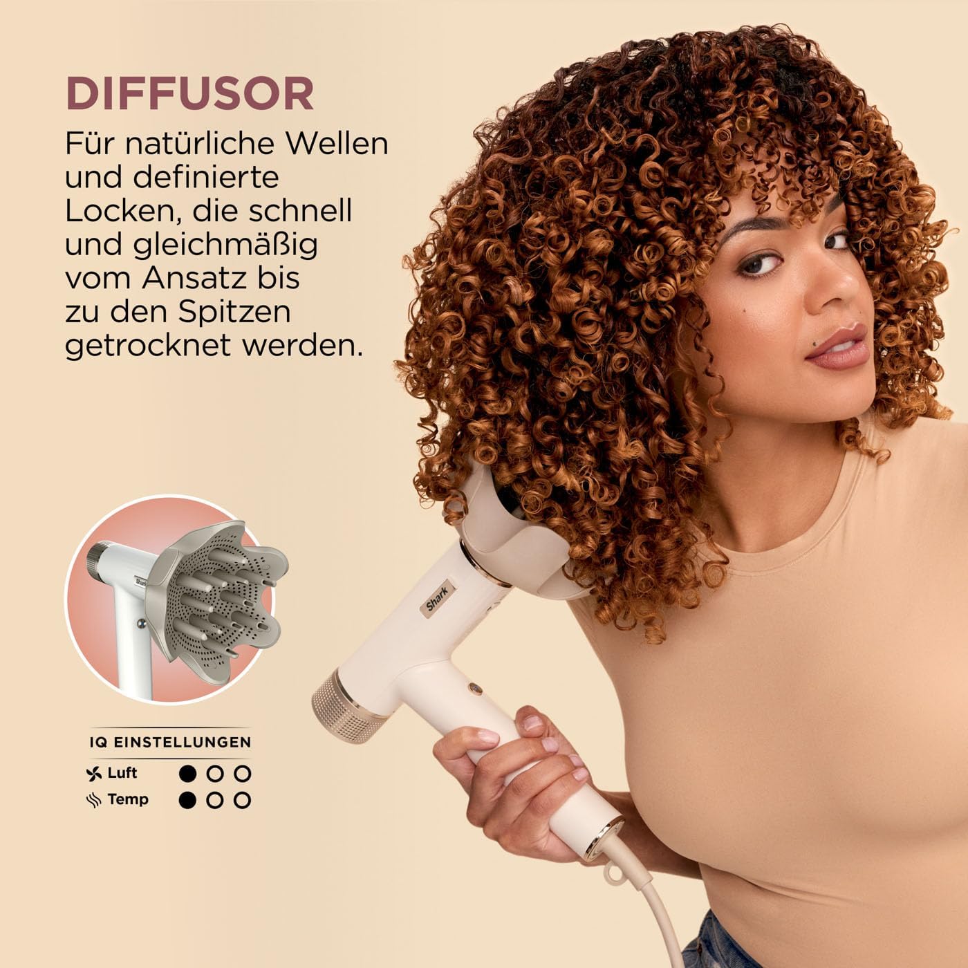 - BEINHALTET: Shark SpeedStyle-Haartrockner, RapidGloss-Finisher, QuickSmooth-Bürste, Turbo-Konzentratordüse, Express Touchup-Bürste, DefrizzFast Diffusor, Aufbewahrungstasche. Gewicht: 750g. Farbe: Seidenweiss