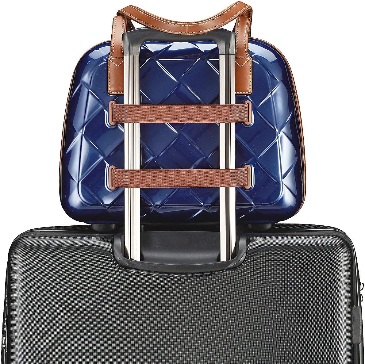- REISEKOMFORT - Elastische Spannbänder zum Aufstecken auf das Gestänge eines Koffers. Der Koffer ist mit Griffen aus Echtleder ausgestattet.