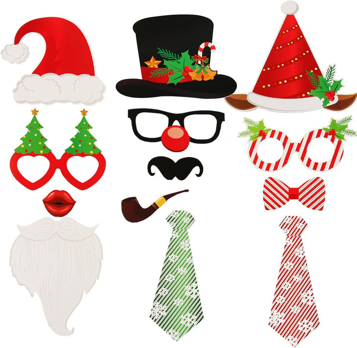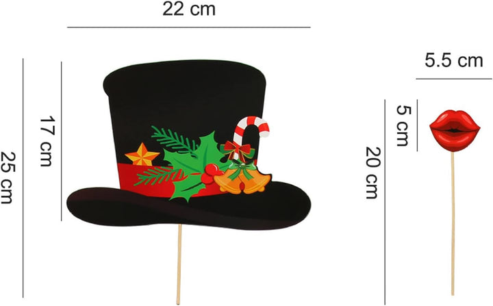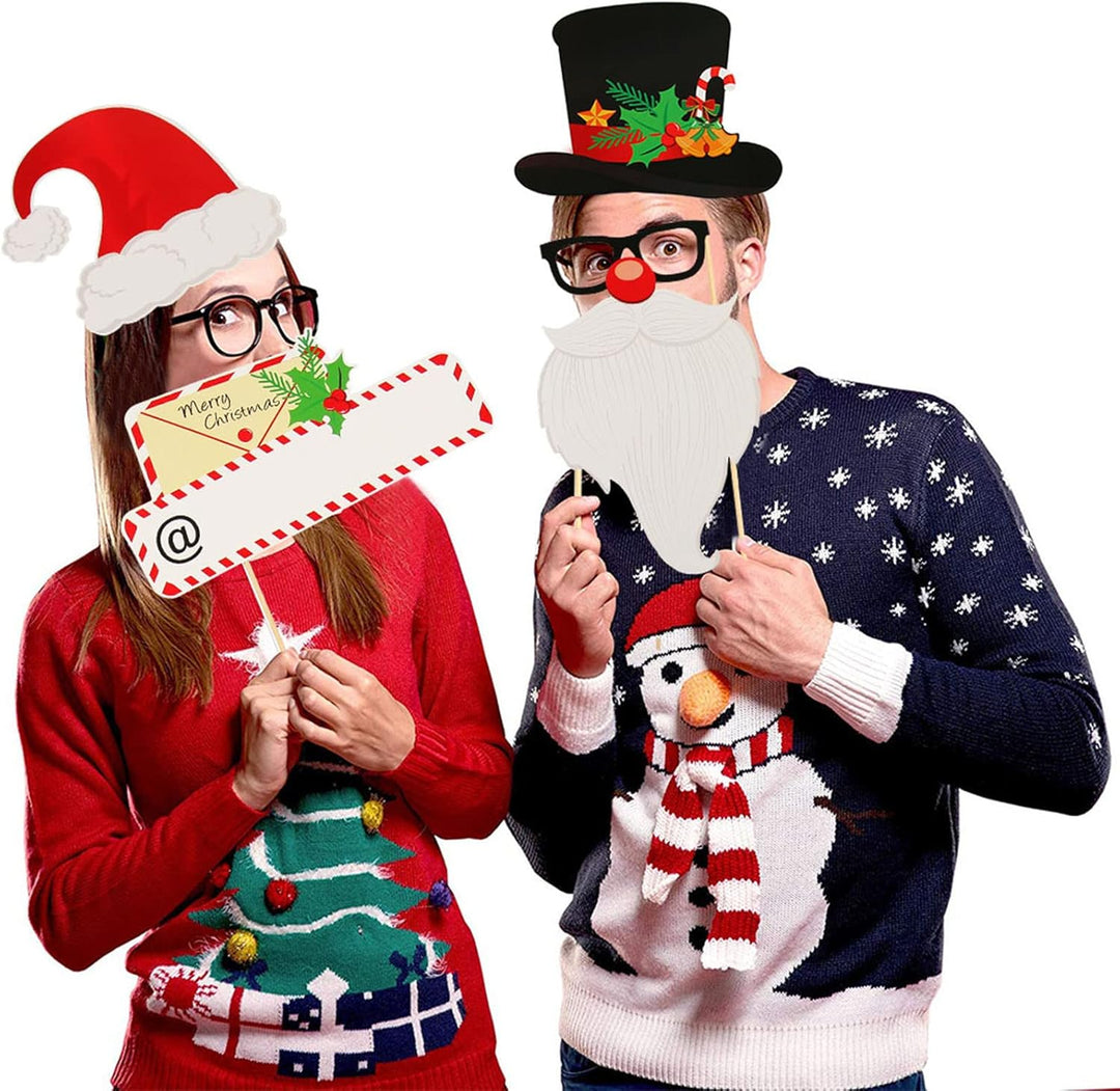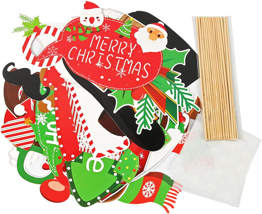 - 🎄Enthalten: 28 Stück lustige Foto Requisiten, 1 Packung Sticks, 1 Satz Aufkleber.