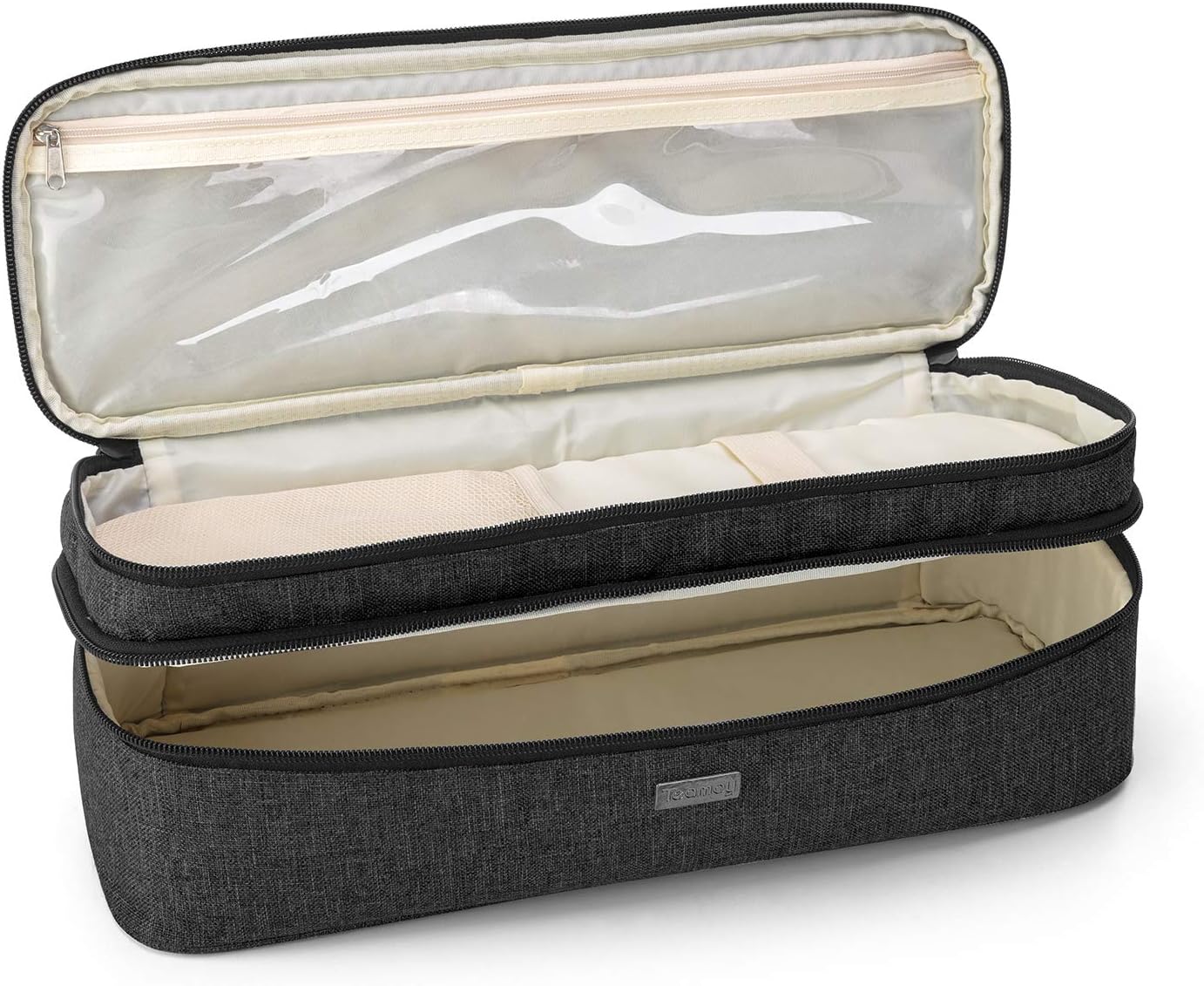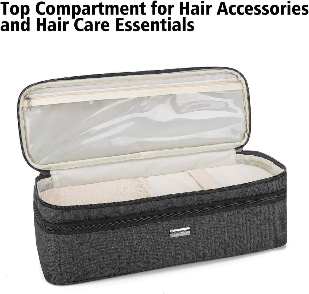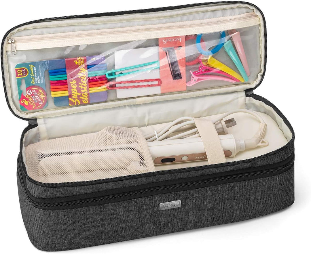 - Doppelschicht Design: Das obere Fach verfügt über eine elastische Netztasche mit Gummiband zur Befestigung von Haarglätter. Eine transparente Tasche für Haarklammern und Clips. Das Hauptfach bietet genug Platz für Ihre Stylingbürste.
