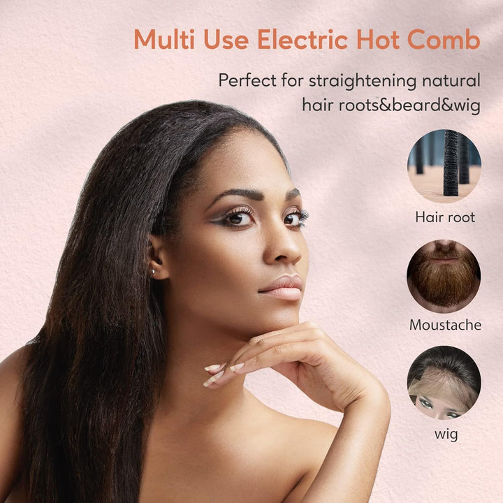 - MEHRERE HITZEINSTELLUNGEN, VERHINDERT UNBEABSICHTIGTES AUSSCHALTEN: Teviiix Heisskamm-Glätter mit 5 einstellbaren Hitzestufen kann bis zu 210℃ erreichen, so dass Haare/Bart/Zopf in einer niedrigeren oder höheren Einstellung geglättet werden können,