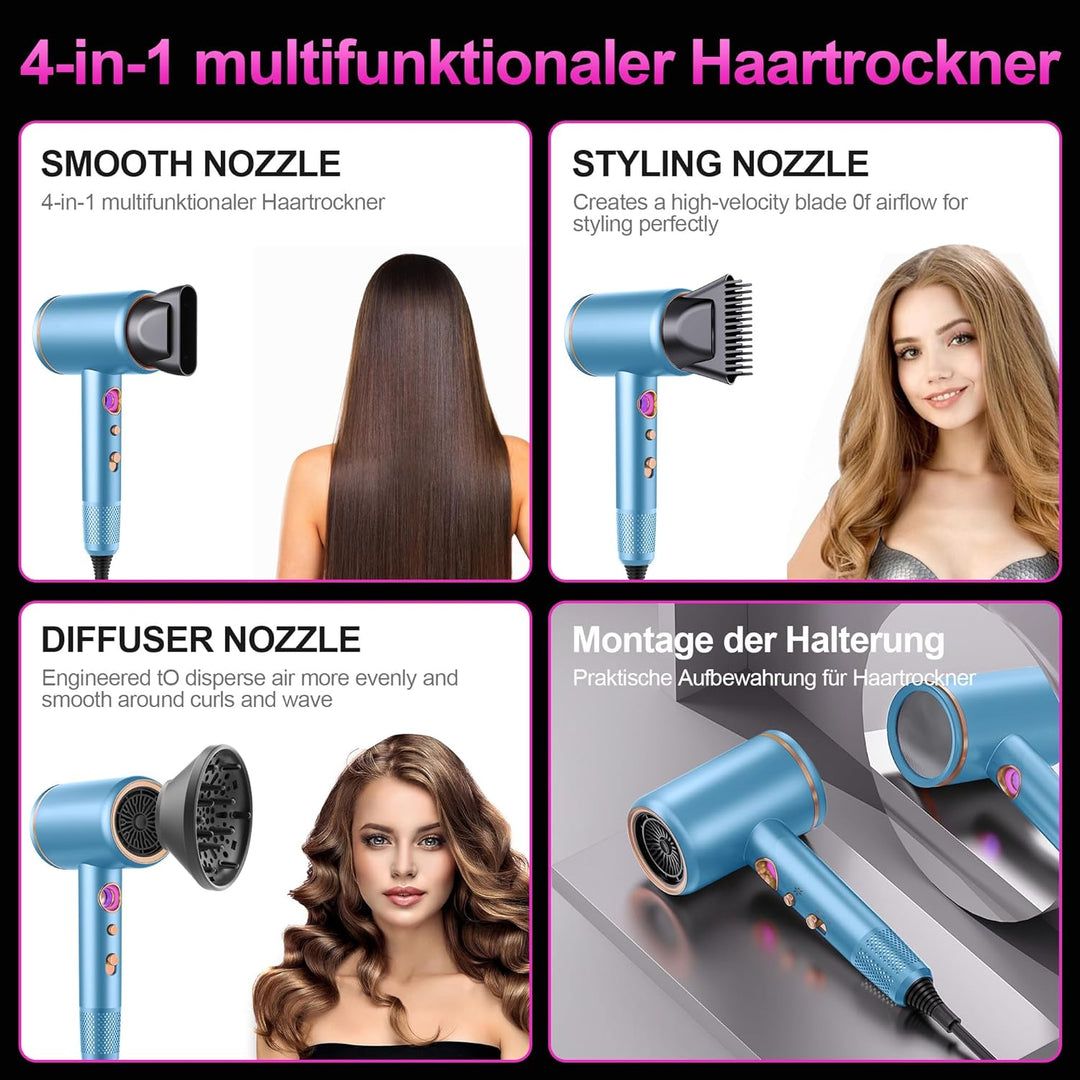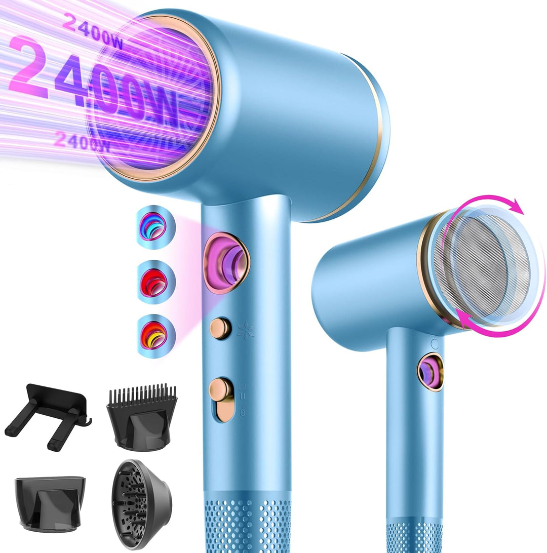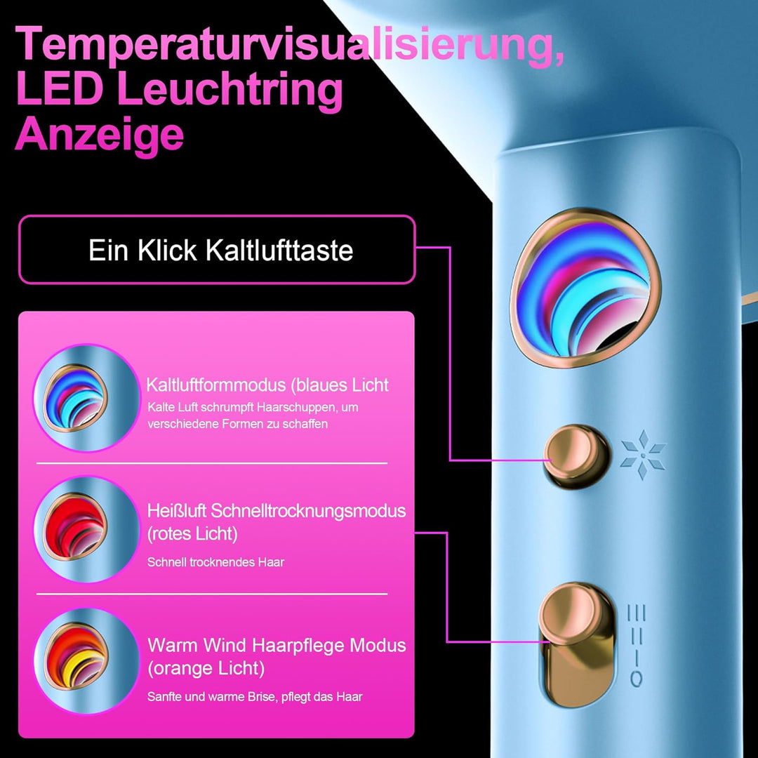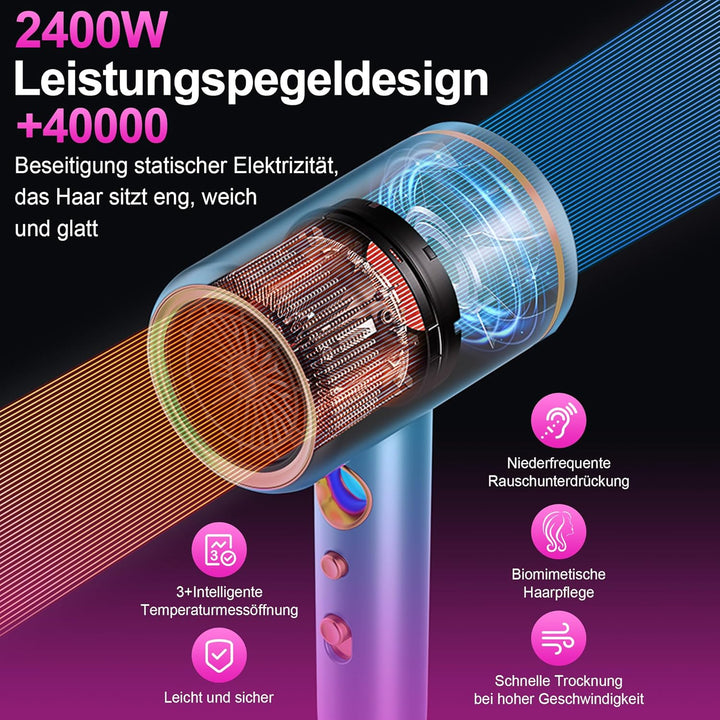 - Dieser Haartrockner verwendet eine 2400W ultra starke Leistung, schnell zu trocknen, hohe Konzentration Duft negative Ionen, intelligente konstante Temperatur und keinen Schaden für das Haar, 3 Windschutzscheibenpositionen+intelligenter AI-Modus,