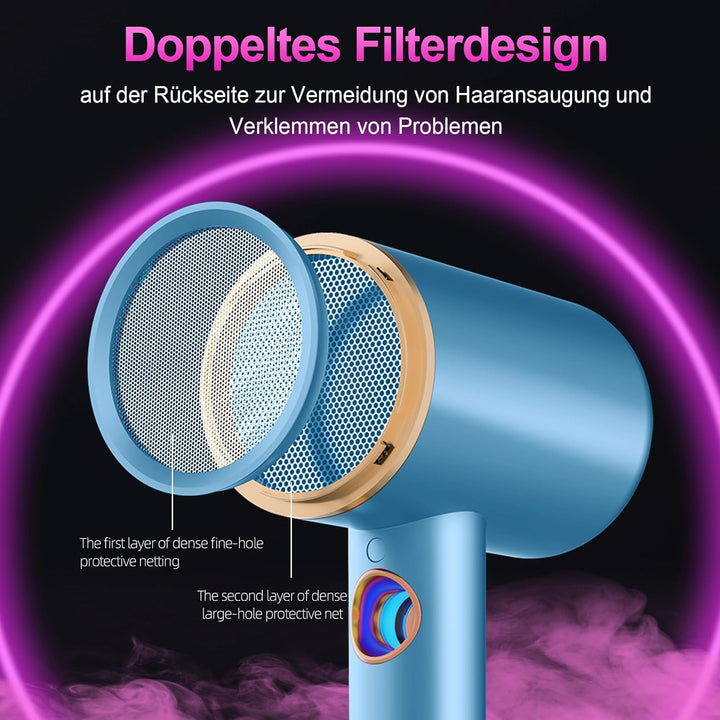 - Dieser Haartrockner steht durchweg an der Spitze der meistverkauften Liste, mit Luftstrom-Verdoppelungstechnologie, einem 40000-Drehzahlmotor, 22 Meter pro Sekunde (Hurrikan Level starke Winde) und einer Lebensdauer von über 3000 Stunden.