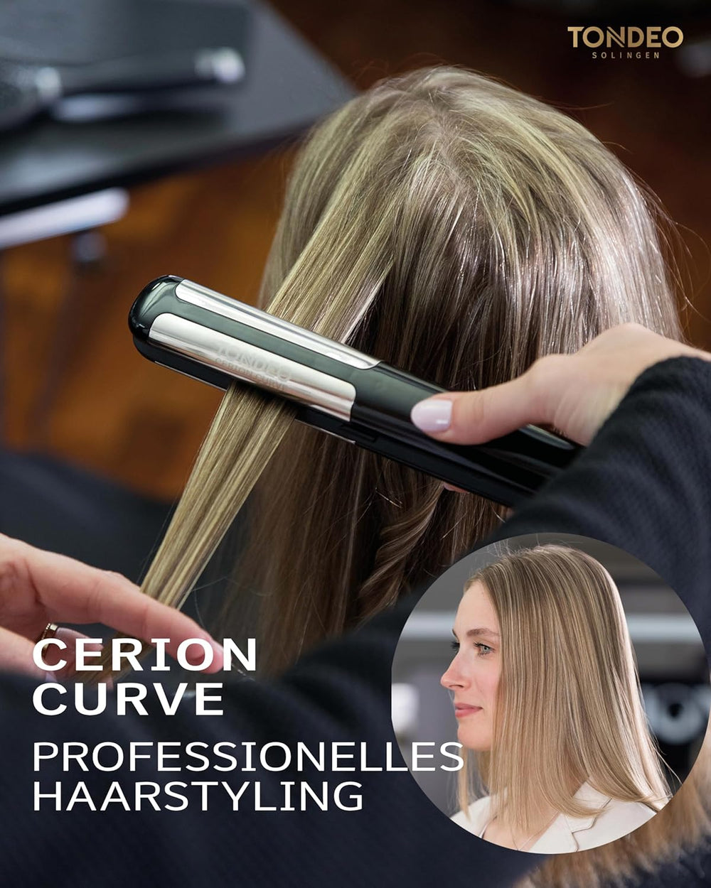 - 𝐒𝐂𝐇𝐍𝐄𝐋𝐋 𝐔𝐍𝐃 𝐙𝐔𝐕𝐄𝐑𝐋Ä𝐒𝐒𝐈𝐆 - Das Profi-Glätteisen CERION CURVE sorgt für schnelles und zuverlässiges Glätten der Haare. In kürzester Zeit zu seidig glattem Haar.