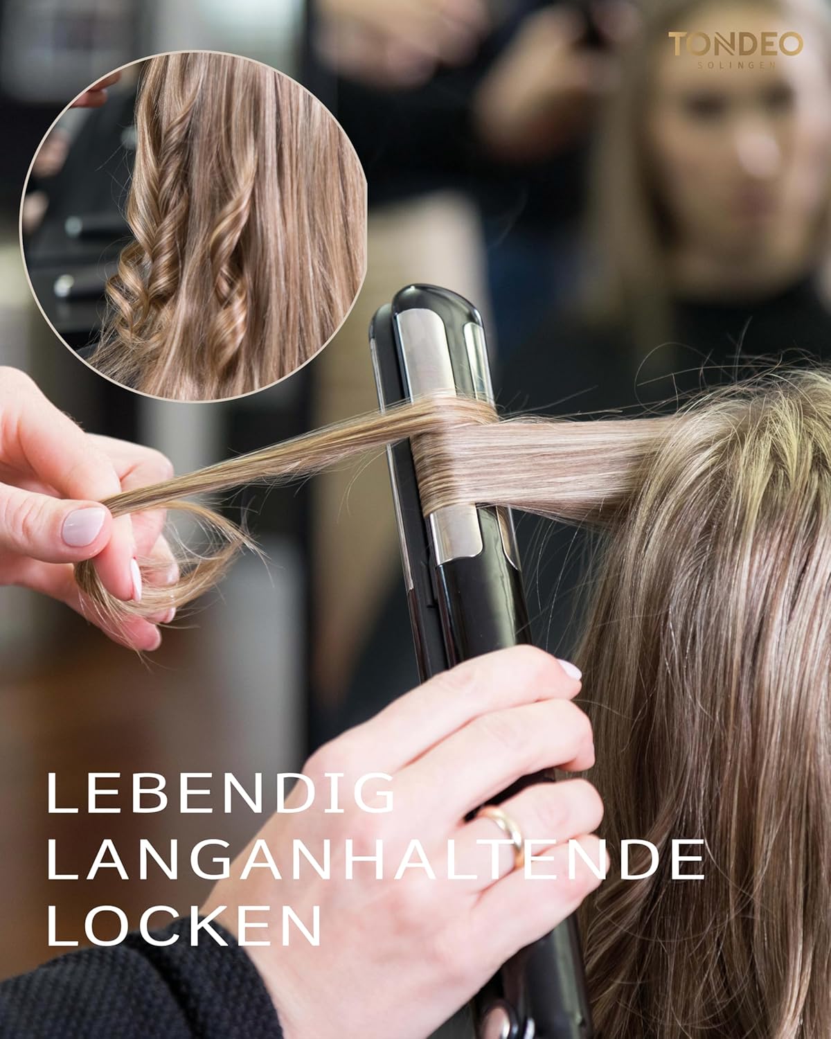 - 𝐒𝐂𝐇𝐎𝐍𝐄𝐍𝐃 𝐔𝐍𝐃 𝐆𝐋𝐄𝐈𝐂𝐇𝐌Ä𝐒𝐒𝐈𝐆 - Die hochwertige Verarbeitung und gleichmässige Wärmeverteilung schonen das Haar und sorgen für eine gleichmässige Glättung oder langanhaltende Locken.