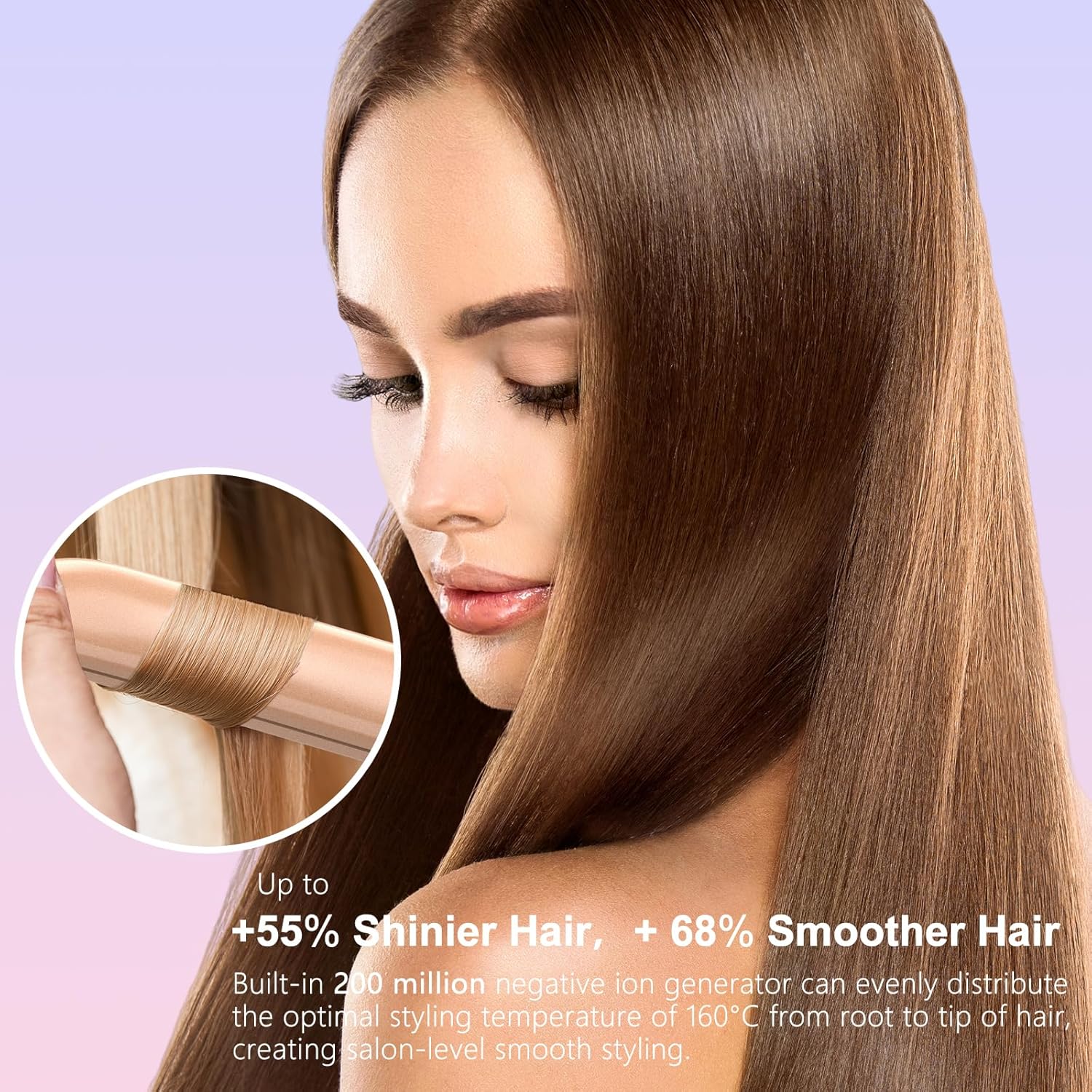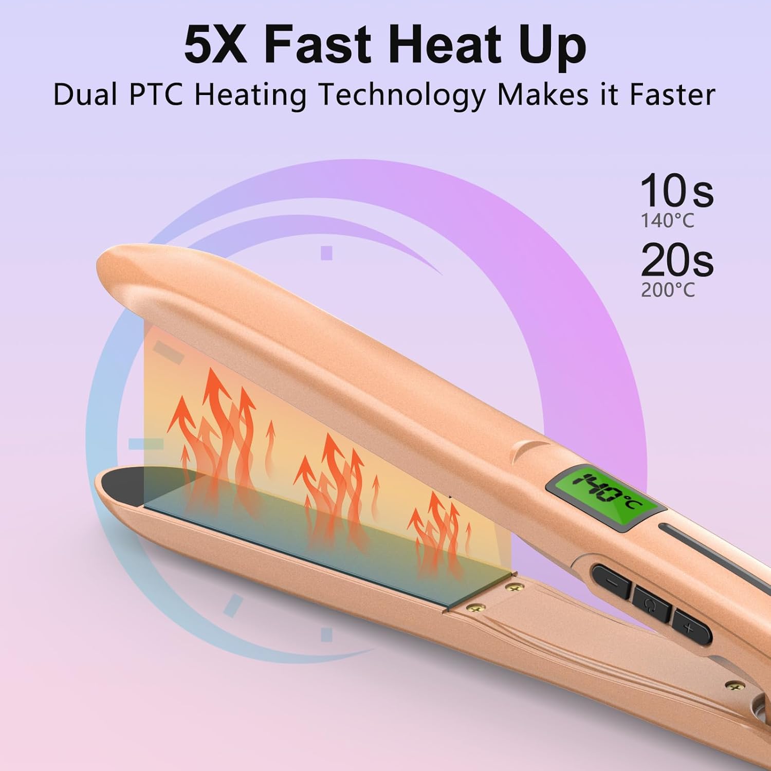 - 【5X Heiztechnologie】Ausgestattet mit dualer PTC-Heiztechnologie und DCH-Heizelementen heizt sich der Haarglätter in nur 10 Sekunden auf 140 °C auf, sodass lange Wartezeiten entfallen