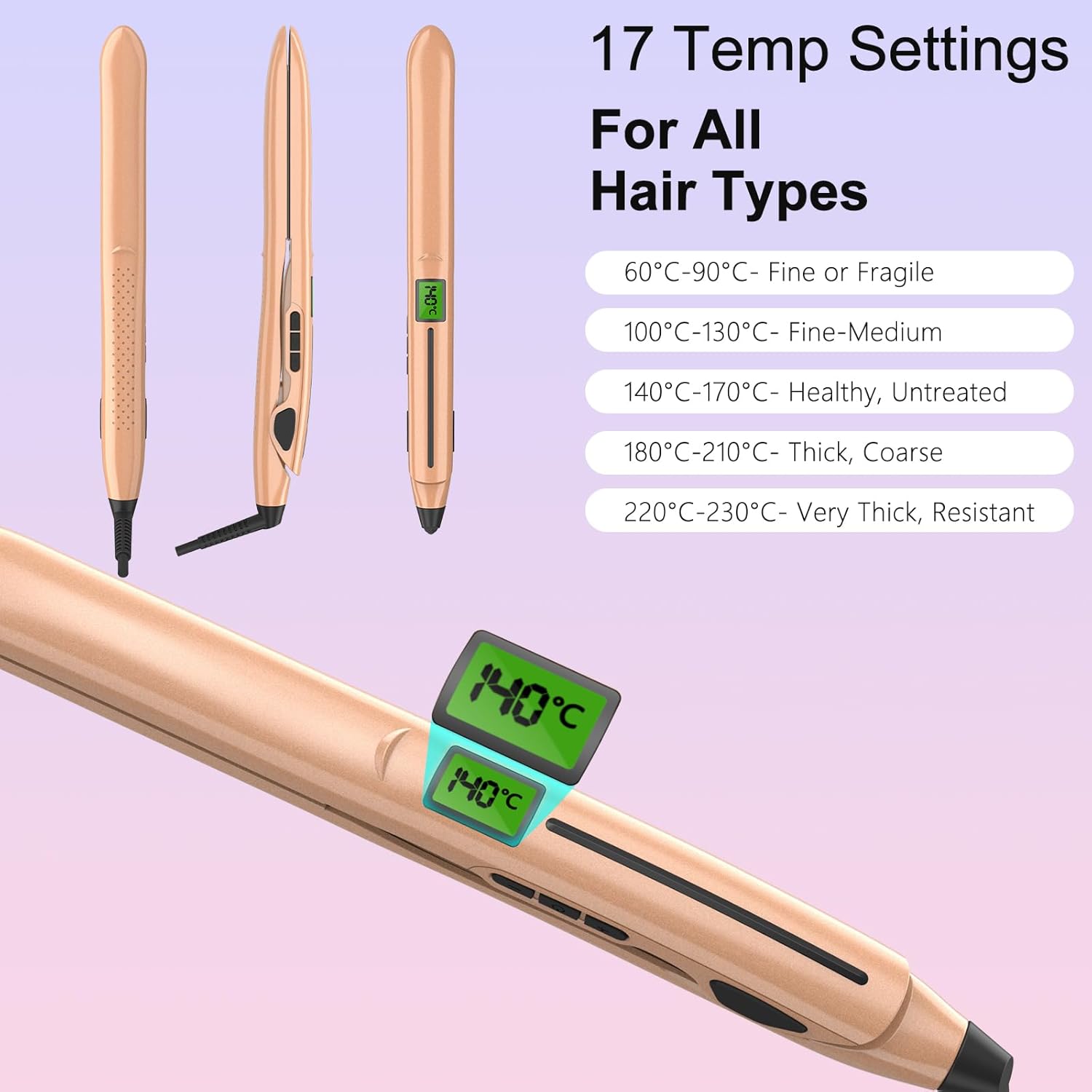 - 【Geeignet für alle Haartypen】Erstellen Sie mühelos Stylings in Salonqualität für kurzes, mittellanges, langes, brüchiges, dünnes, dickes und natürliches Haar. 17 Temperatureinstellungen (60 °C – 230 °C) und ein LCD-Display ermöglichen
