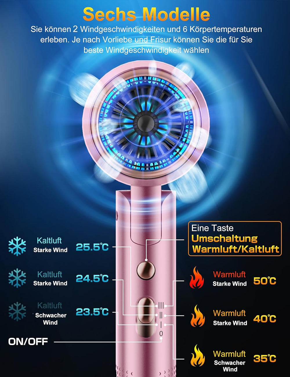 - 【Mehrere Modus Wahlmöglichkeiten】Dieser Haartrockner hat zwei Modi zur Auswahl (heiss und kalt), erfüllt alle Anforderungen für den Heim- und professionellen Salonbetrieb. Jeder Modus verfügt über drei einstellbare Ebenen, ob Winter oder Sommer,