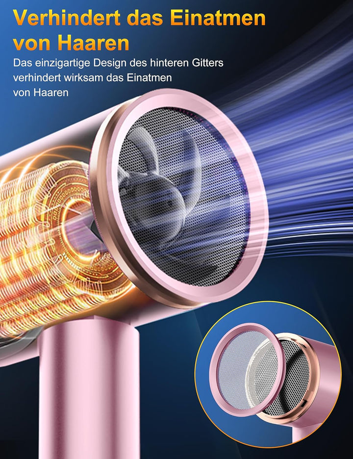 - 【Hochgeschwindigkeits-Haartrockner】Mit patentierter Konstanttemperatur-Heiztechnologie und präzisionsausgeglichenem Turbo-Ventilator-Design,Mit einer maximalen Luftgeschwindigkeit von 20 m/s trocknet der Haartrockner das Haar bis zu 25 % schneller