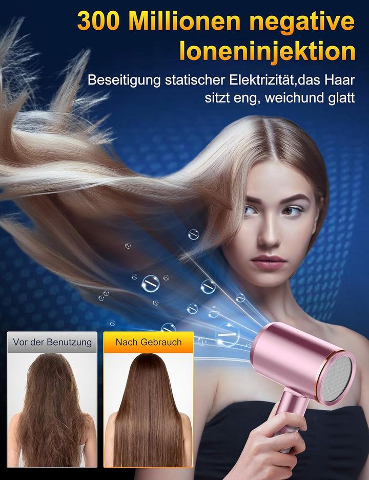 - 【300 Millionen Negative Ionen】Professioneller Haartrockner mit 2400 W bietet schnelles Trocknen, hohe Konzentration von negativen Ionen, intelligente Temperaturregelung,proteinschäden zu reduzieren, um die natürliche Feuchtigkeit im Haar zu