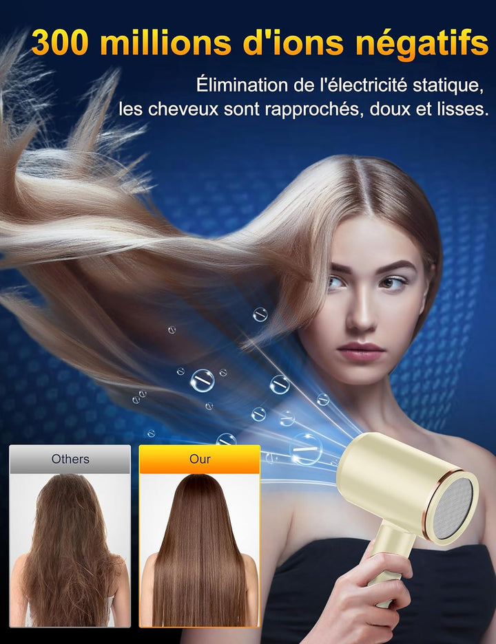 - 【300 Millionen Negative Ionen】Professioneller Haartrockner mit 2400 W bietet schnelles Trocknen, hohe Konzentration von negativen Ionen, intelligente Temperaturregelung,proteinschäden zu reduzieren, um die natürliche Feuchtigkeit im Haar zu