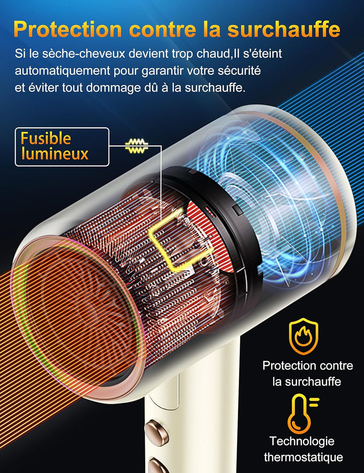 - 【Überhitzungsschutz Vorrichtung】Dieser Haartrockner verfügt über einen intelligenten konstanten Temperaturschutz, um Ihr Haar zu pflegen. NTC erkennt 1500-mal pro Sekunde, und sobald die Windtemperatur 100° überschreitet, wird der Heizdraht
