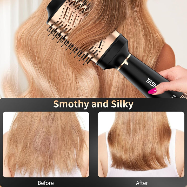 - 4 in 1 für Haarstyler: Die beheizte Haarbürste von YASHE vereinfacht den Haarstyling-Prozess. Egal, ob Sie Ihr Haar trocknen, glätten, Locken hinzufügen oder das Volumen steigern möchten. EIN STRICH für alle Haarstylings