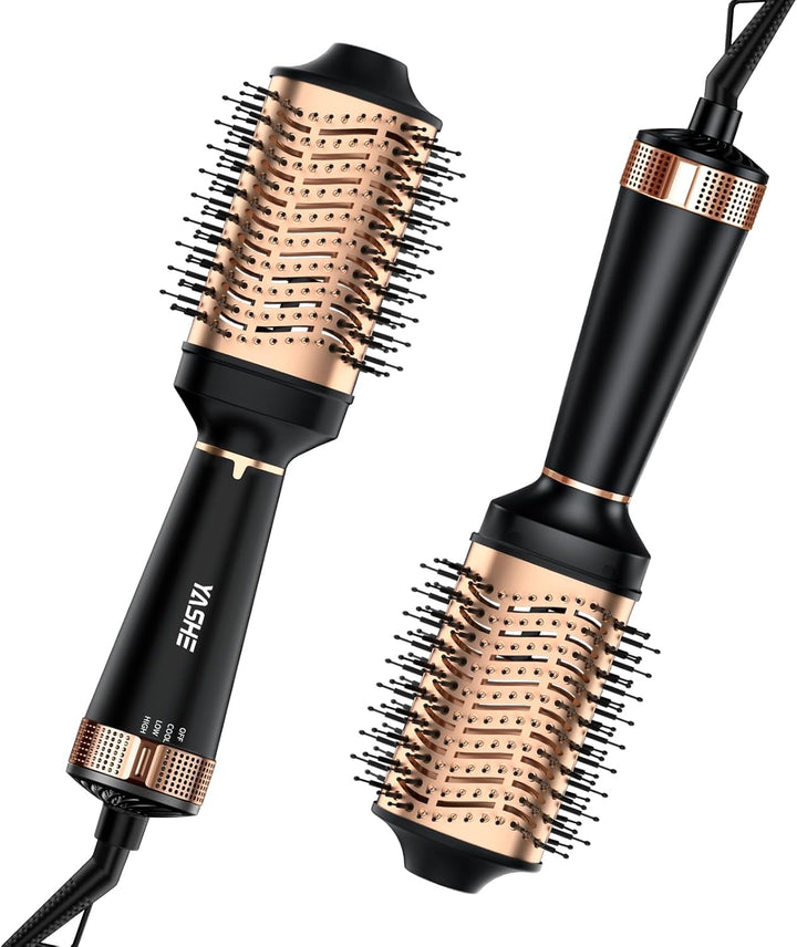- Keramik- und Ionen-Technologie: Die Haartrockner- und Stylerbürste von YASHE verteilt die Hitze gleichmässig, um Haarschäden zu minimieren, den Styling-Prozess zu vereinfachen und ein Ergebnis in Salonqualität zu erzielen. Sie reduziert Frizz und