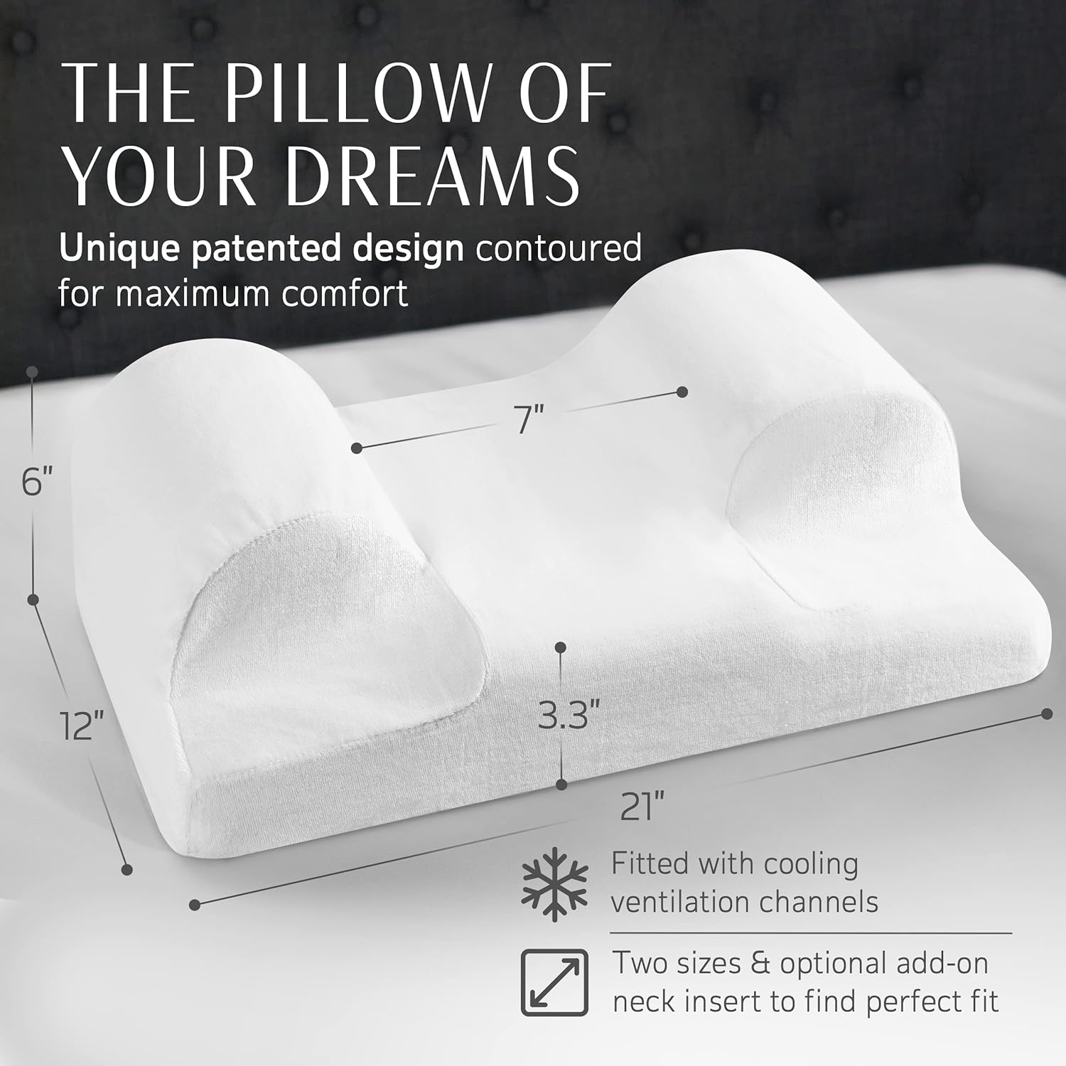 - Eliminate Neck and Shoulder Pain: Say hello to the pillow back sleepers and side sleepers need! Our neck sleeping pillow鈥檚 memory foam and patented design prevent pillow neck pain and provide relief for pressure points by redistributing weight and