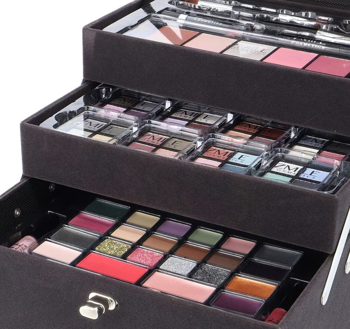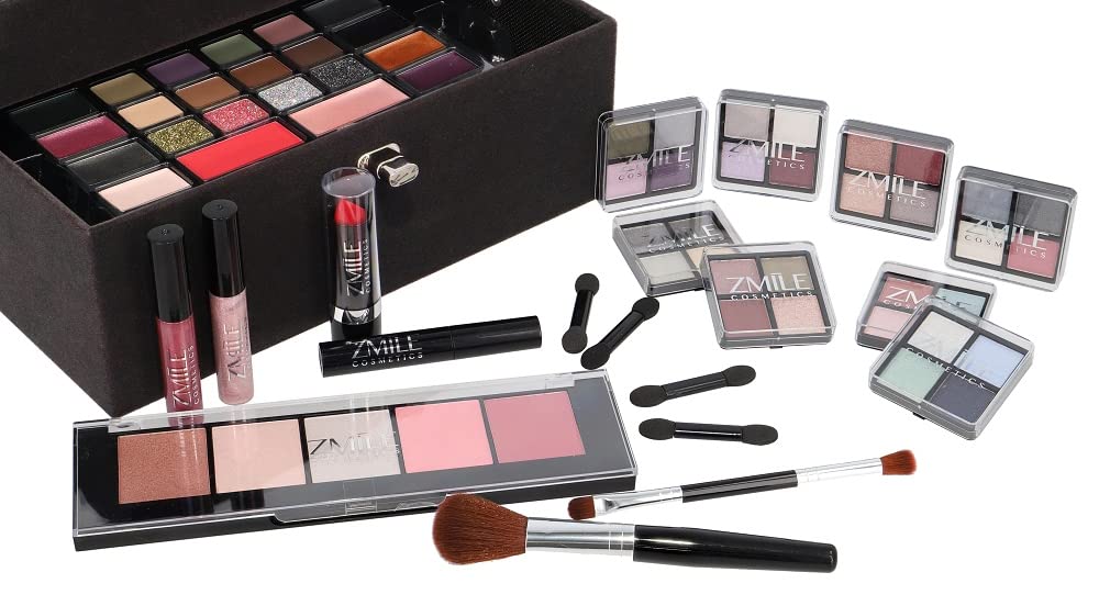 - Inhalt: 32 Lidschatten (in 4er Compacts), 2 x Rouge, 3 x Highlighter, 3 x Augenbrauenpuder, 1 x Augenbrauenwachs, 8 x Creme Lidschatten, 4 x Body Glitter Creme, 4 x Korrekturcreme, 2 x Lipgloss Creme, 2 x Lipgloss, 1 x Lippenstift, 1 x Mascara, 1 x