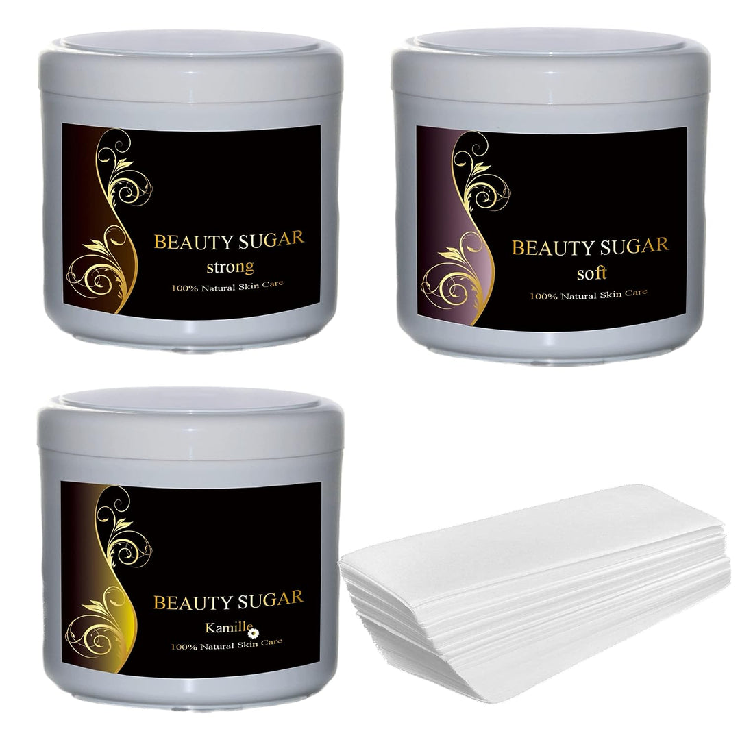 - Beauty Sugar Zuckerpaste strong, soft und kamille+ 100 Vliesstreifen im Set zum günstigen Kennenlernpreis