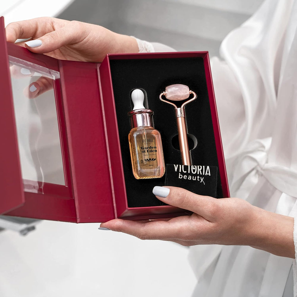 Victoria Beauty - Geschenkset für Frauen mit Jade Roller und Gesichtsserum, Geschenkbox für Damen mi
