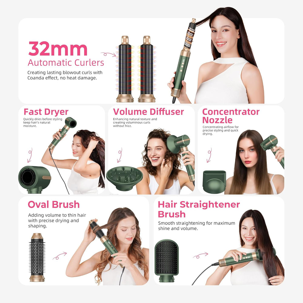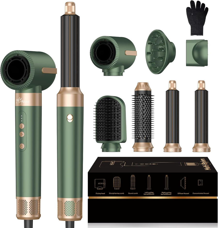 Atopskins Hairstyler Warmluftbürste 7 in 1 Airstyler set,110000 RPM Ionen Haartrockner Set mit Föhn,