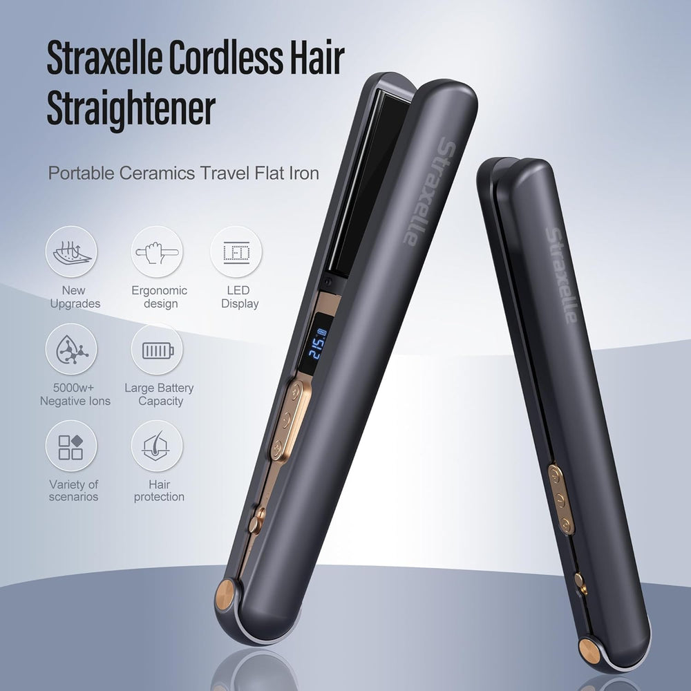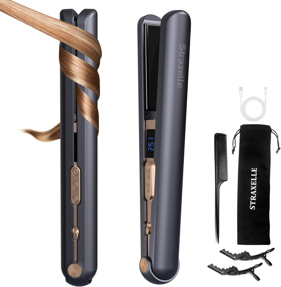 2 in 1 Glätteisen Kabellos und Lockenstab,Haarglätter mit 10000mAh Tragbares Reiseglätteisen 3 Einst