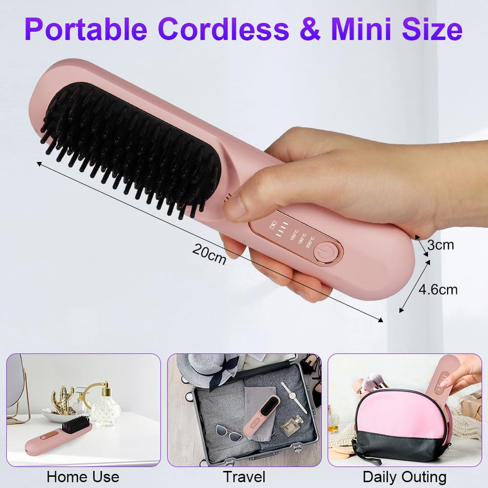 LOPHE Mini Haarglätterbürste, Glättbürste Kabellos, Hair Straightener Comb mit LCD-Bildschirm 3-Stuf