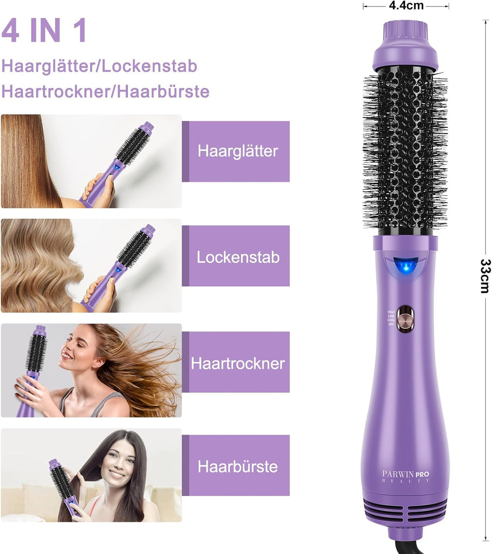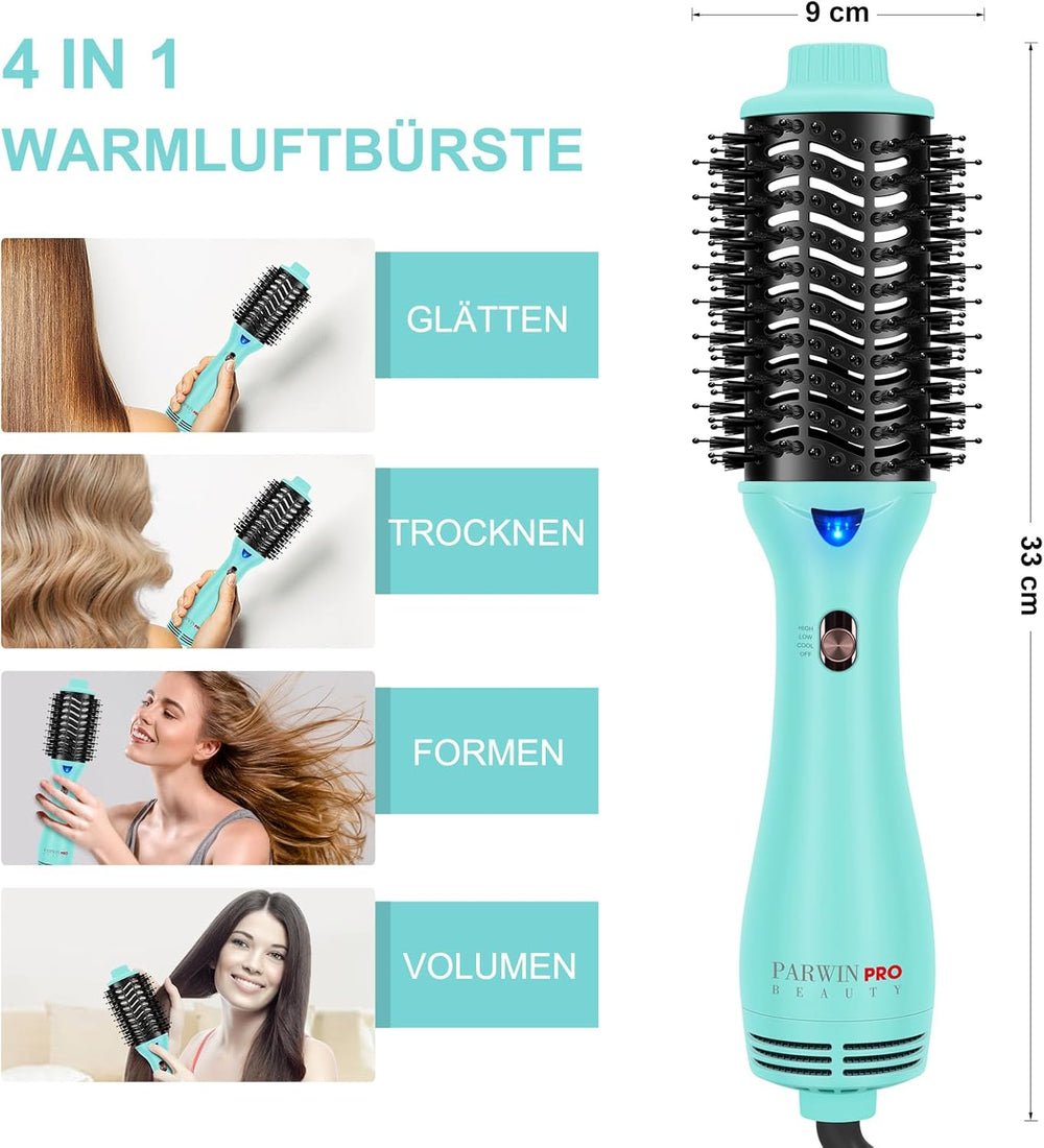 One-Step Warmluftbürste Föhnbürste, PARWIN PRO BEAUTY Rundbürstenföhn, 4 in 1 Rund Haartrockner lock