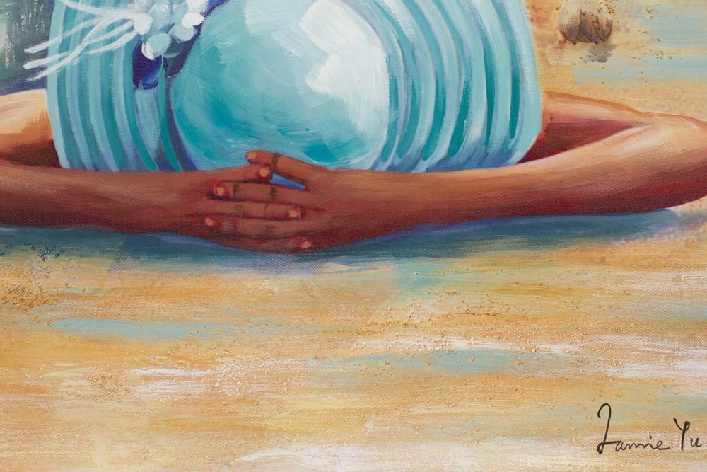 KunstLoft Leinwandbild | 100% HANDGEMALT | 60x90cm | Gemälde 'Beach Beauty' | Frau | Blau Beige | Wa