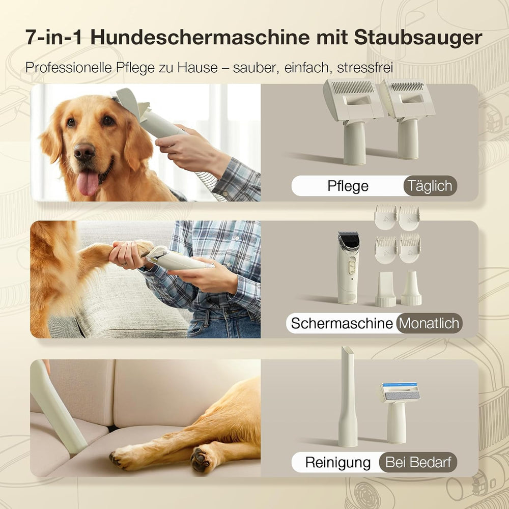 Hundeschermaschine mit Tierhaar Staubsauger & Haartrockner 11000Pa 7-in-1 Haustierpflegeset 2.5L Sta