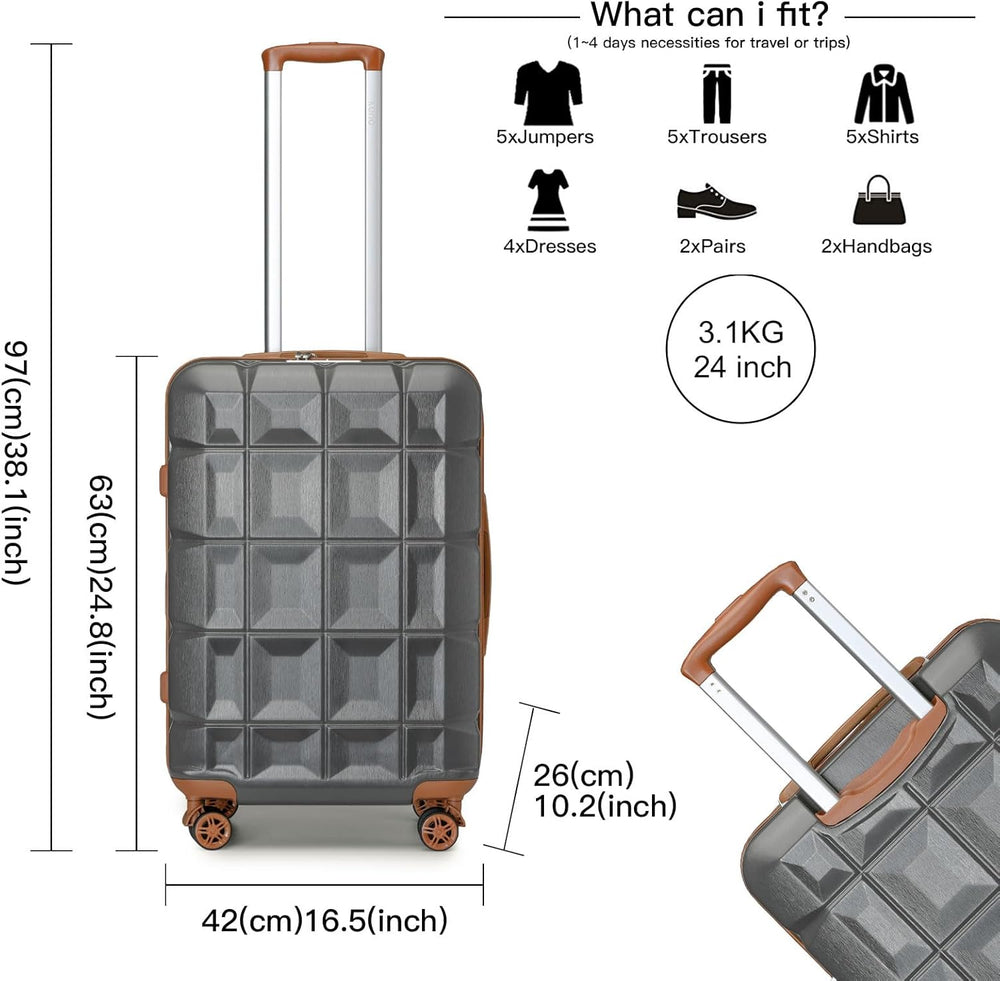 KONO Gepäck-Sets Kofferset 2 Teilig Mittelgross Koffer mit Beautycase (62cm+Kosmetikkoffer, Grau) Gr