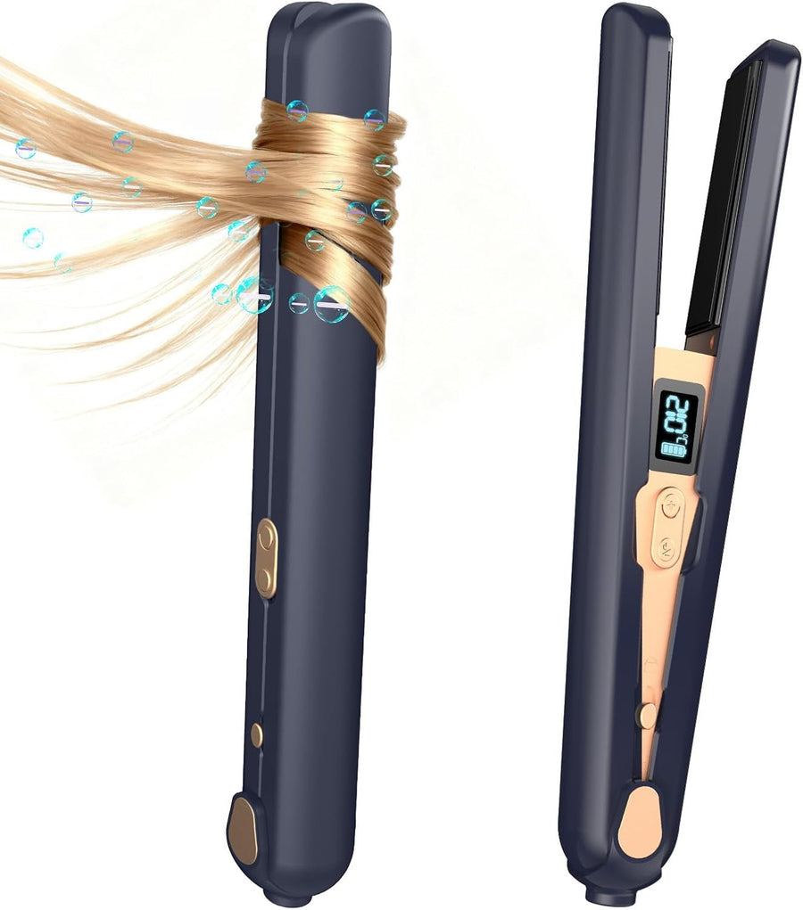 Glätteisen Kabellos mit 9600mAh Akku, Haarglätter und Lockenstab 2 in 1, Glätteisen Akku Tragbares R