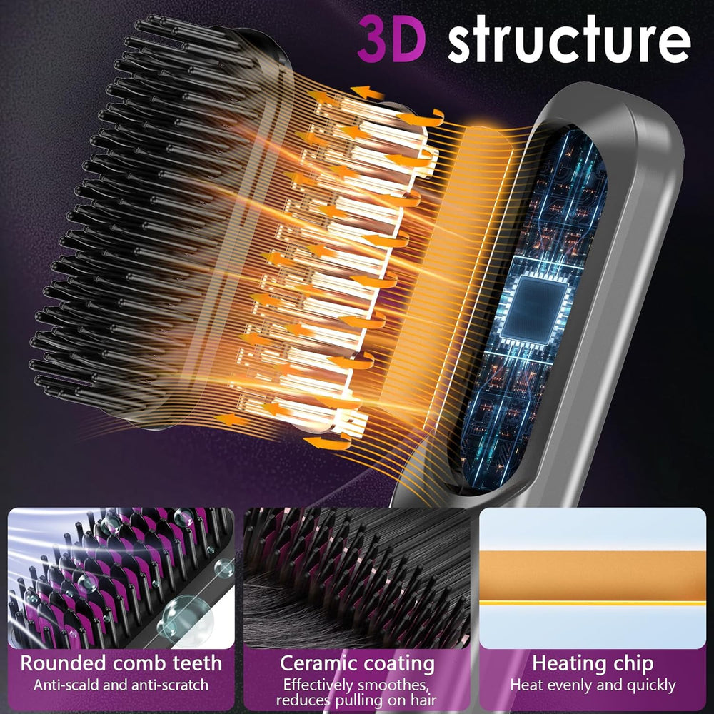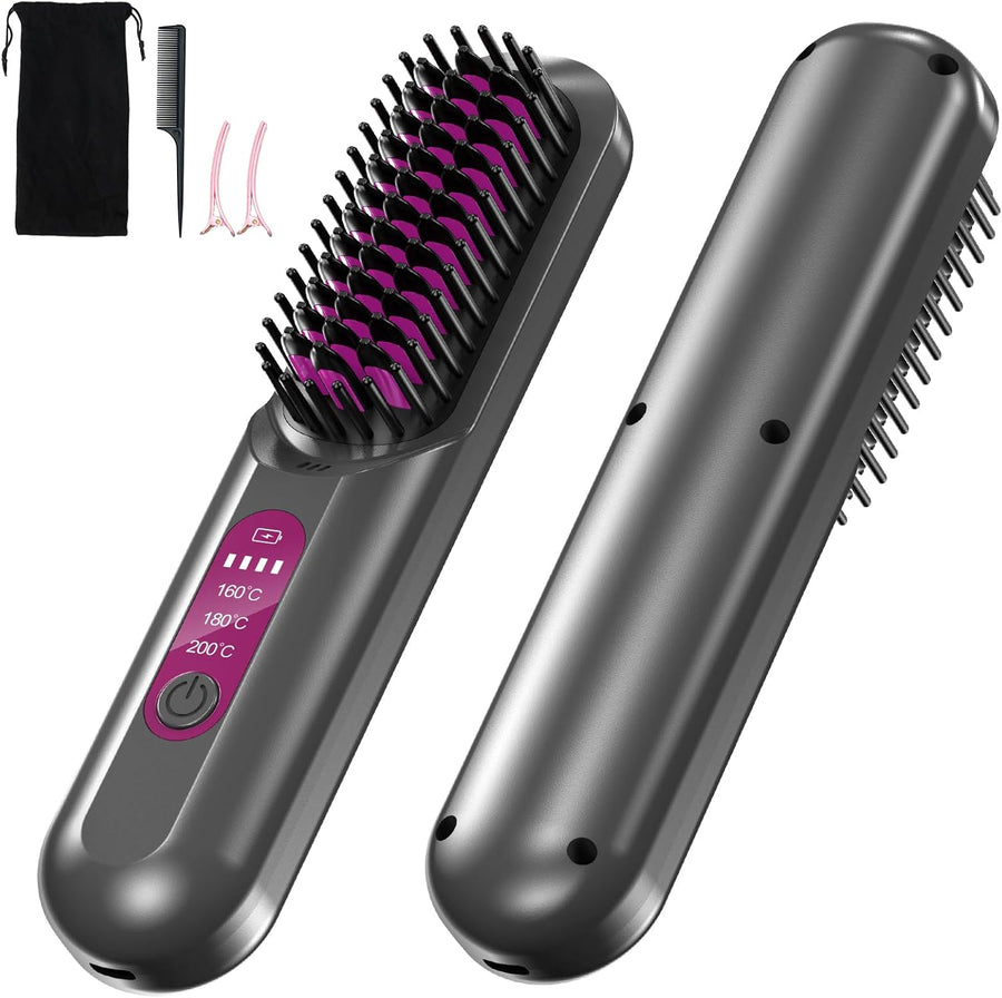Haarglätter Bürste, Kabellose Glättbürste, Glättungskamm mit Verbrühungsschutz, Tragbare Glättungsbü