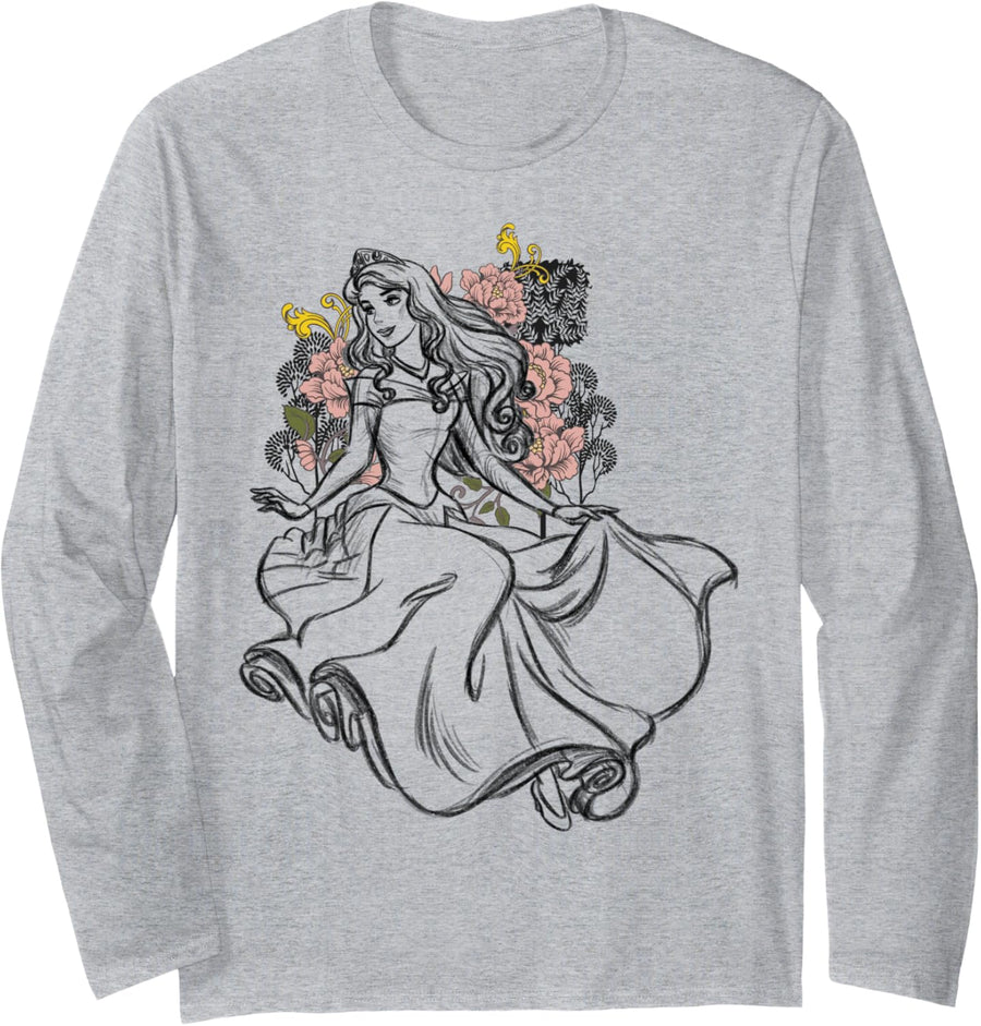 Disney Sleeping Beauty Aurora Sketch Portrait Logo Langarmshirt