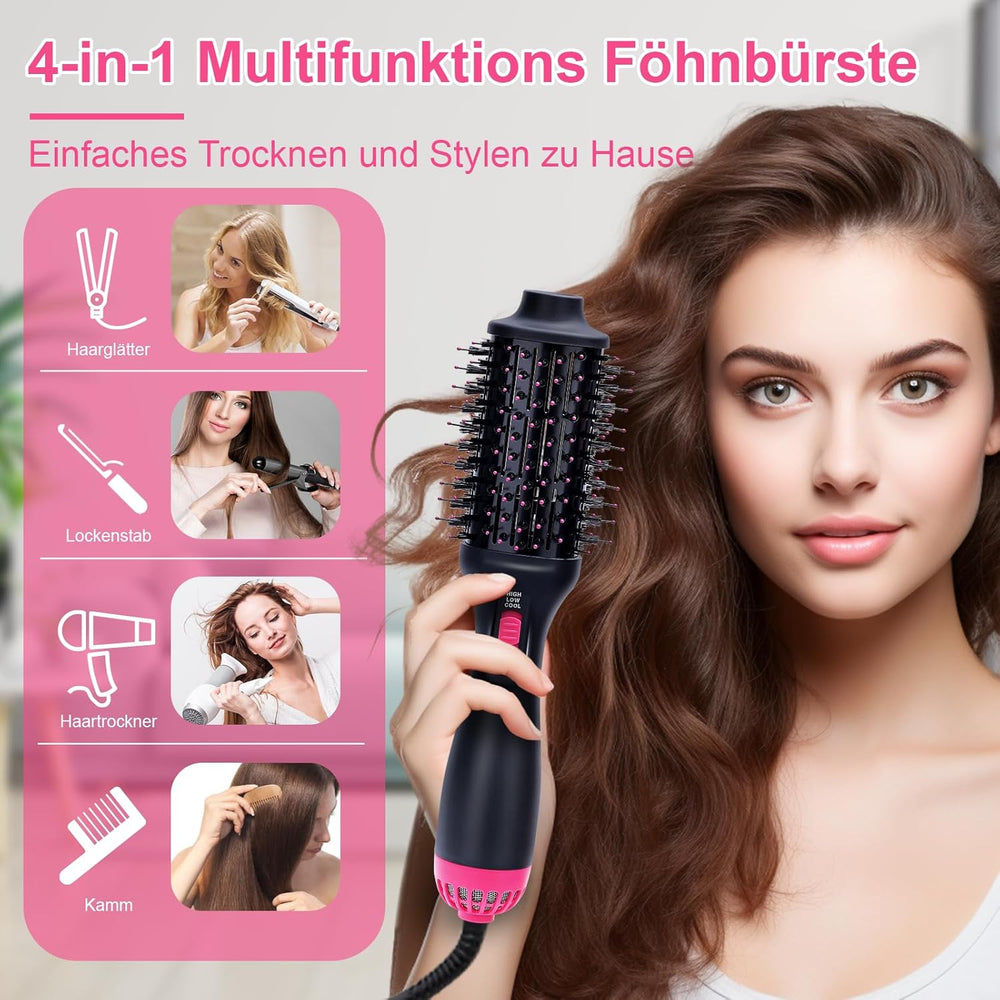 Warmluftbürste Rundbürstenföhn, One-Step Föhnbürste zum Haartrockner 4 In 1 Heissluftbürste mit 3 ei