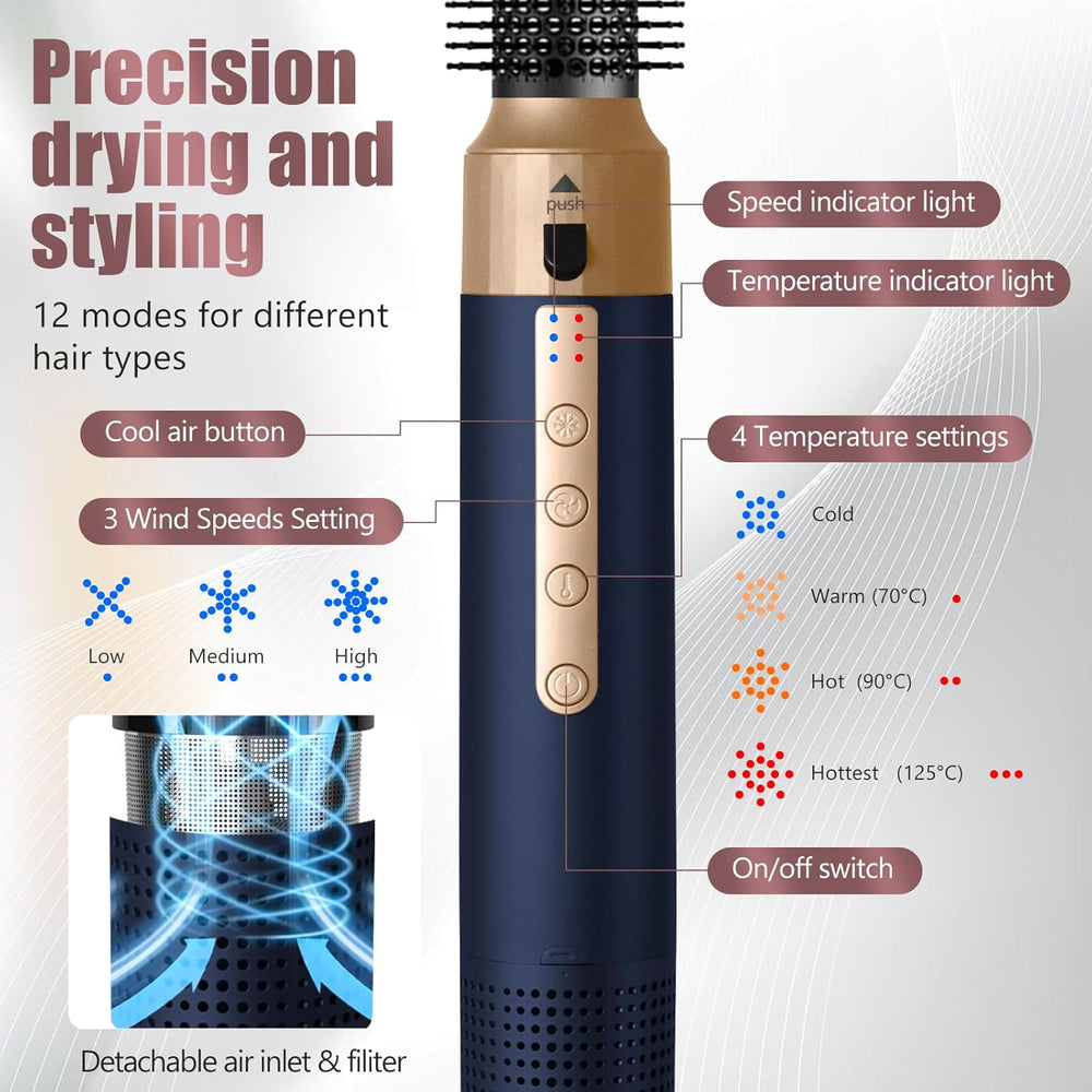 Airstyler & Haartrockner 1350W, Hairstyler set mit Föhn110000 U/Min, Föhnbürste mit Auto Lockenstab,