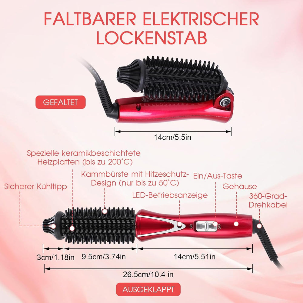 Elektrischer Lockenstab,Faltbarer 30W Haarglätter mit PTC-Turmalinkeramik, 360° Drehkabel, bügelfrei
