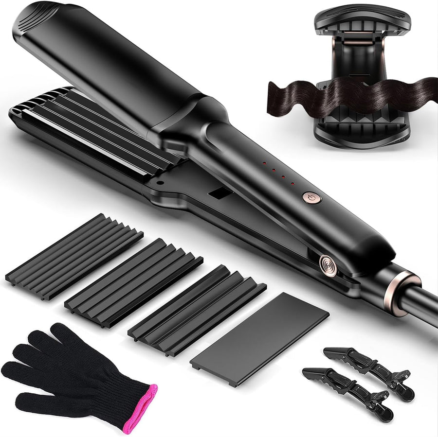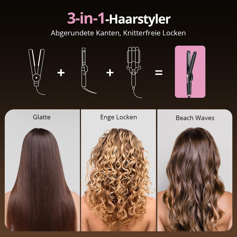 Welleneisen für Beach Waves, 4 in 1 Haarglätter Kreppeisen Multistyler Keramik Glätteisen und Wellei