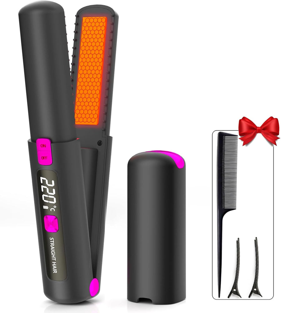 Mini Glätteisen Kabellos, 2 in 1 Glätteisen Locken und Glätten, Haarglätter Und Lockenstab mit USB-C